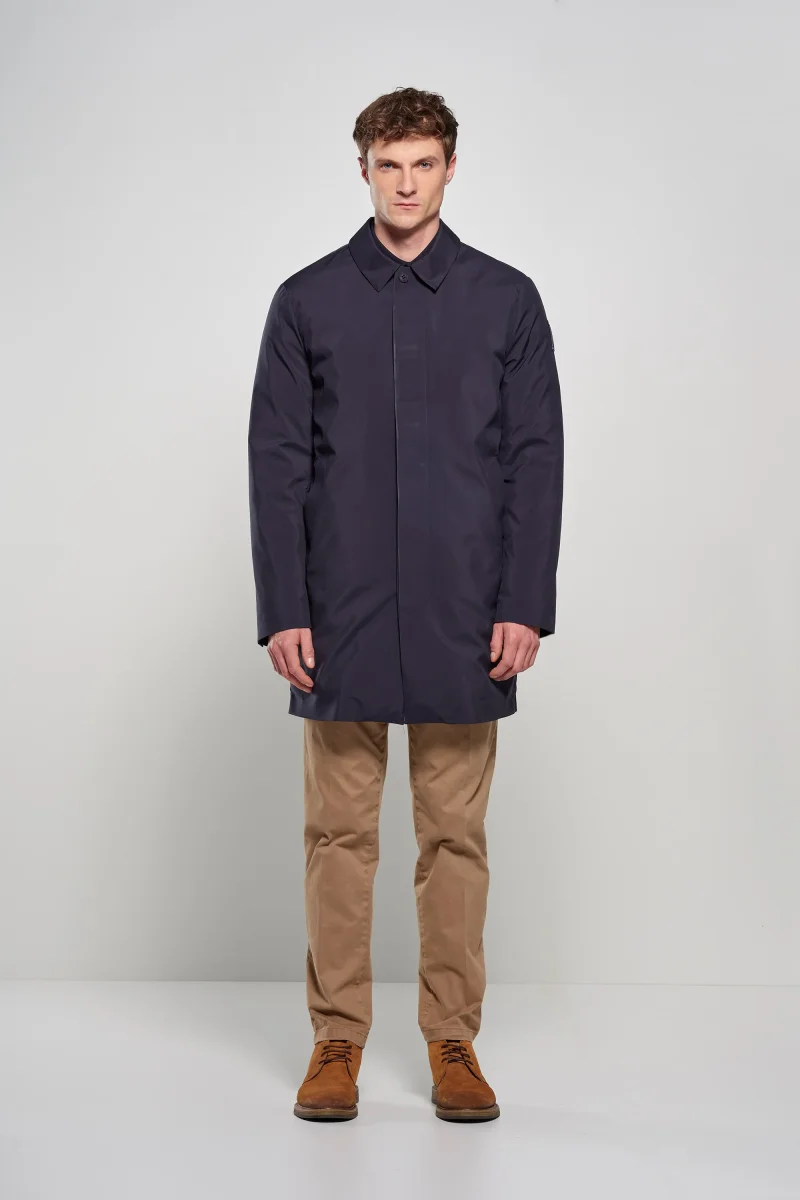 Questo cappotto lungo da uomo dal taglio regular fit unisce stile e praticità. La chiusura anteriore con bottoni coordinati al tessuto valorizza un look essenziale e curato. Lo spacco posteriore favorisce la mobilità e la versatilità, mentre il colletto classico aggiunge un tocco formale. Il trattamento water resistant protegge nelle giornate più umide. Le tasche laterali, sia interne che esterne, custodiscono in modo sicuro gli oggetti personali. Le linee pulite si adattano facilmente sia a contesti informali sia a occasioni più eleganti. Questo modello garantisce un equilibrio perfetto tra protezione dal freddo e design contemporaneo, permettendo di affrontare la stagione invernale con stile.