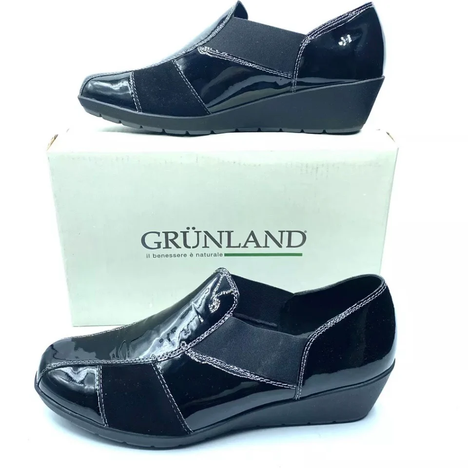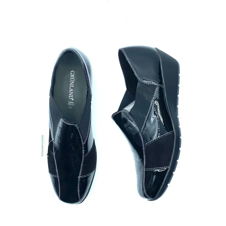 Mocassini GRUNLAND Made in Italia con materiali di alta qualità. In vera pelle scamosciata e vernice di colore nero Stagione autunno inverno Fondo in gomma. Design italiano, materiali naturali. Forma anatomica e massimo comfort. Leggerissimi. Tomaia: vernice e scamosciato Fodera: sintetico Soletta: pelle Plantare: fisso Fondo: gomma Chiusura: da infilare Applicazioni: dettagli in tessuto elasticizzato. […]