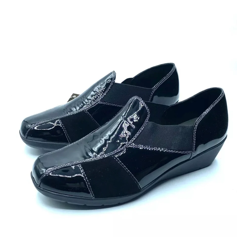 GRUNLAND MOCASSINI IN PELLE SCAMOSCIATA E VERNICE NERI