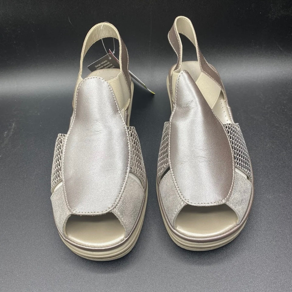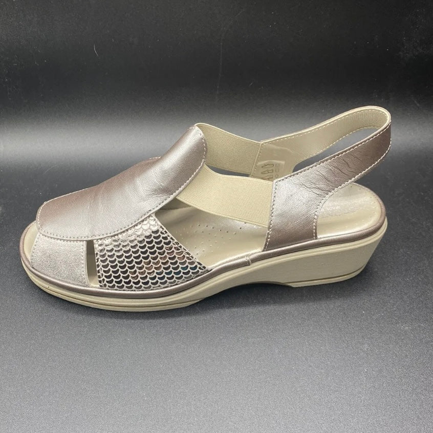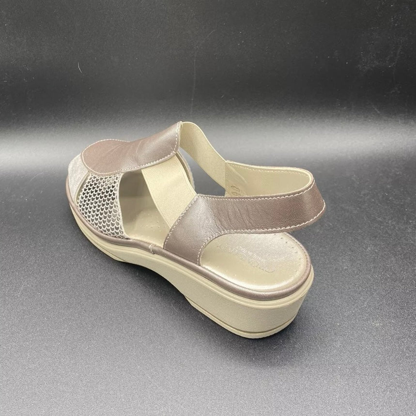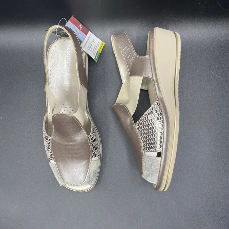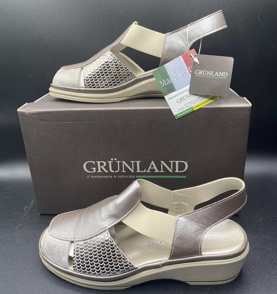 Sandali GRUNLAND numero 40 Made in Italia con materiali di alta qualità. In vera pelle di colore Tortora. Sandalo donna Modello con elastici Tomaia e fodere in pelle Sottopiede anatomico in pelle imbottito Zeppa cm 4 Numero 40 Lunghezza piede 25 cm Suola in gomma Made in italy