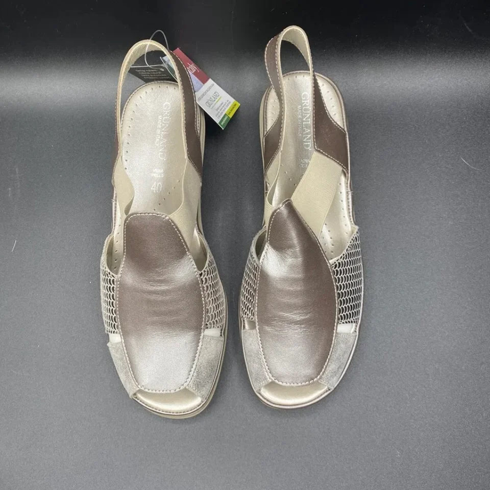 Sandali GRUNLAND numero 40 Made in Italia con materiali di alta qualità. In vera pelle di colore Tortora.