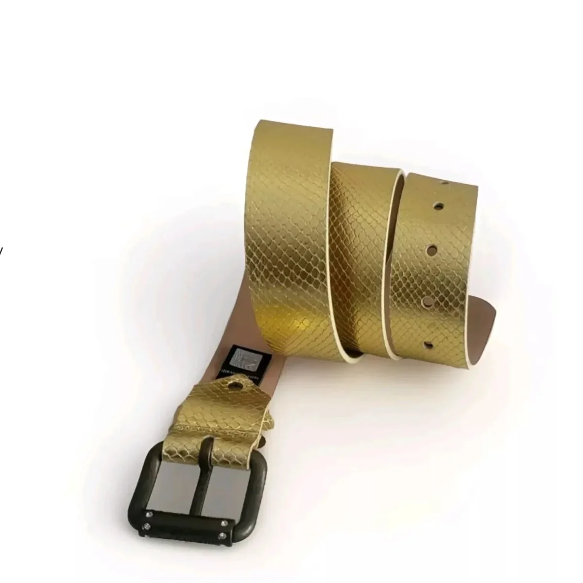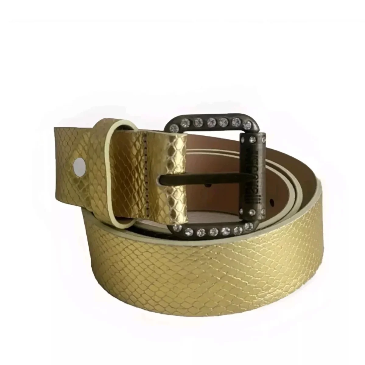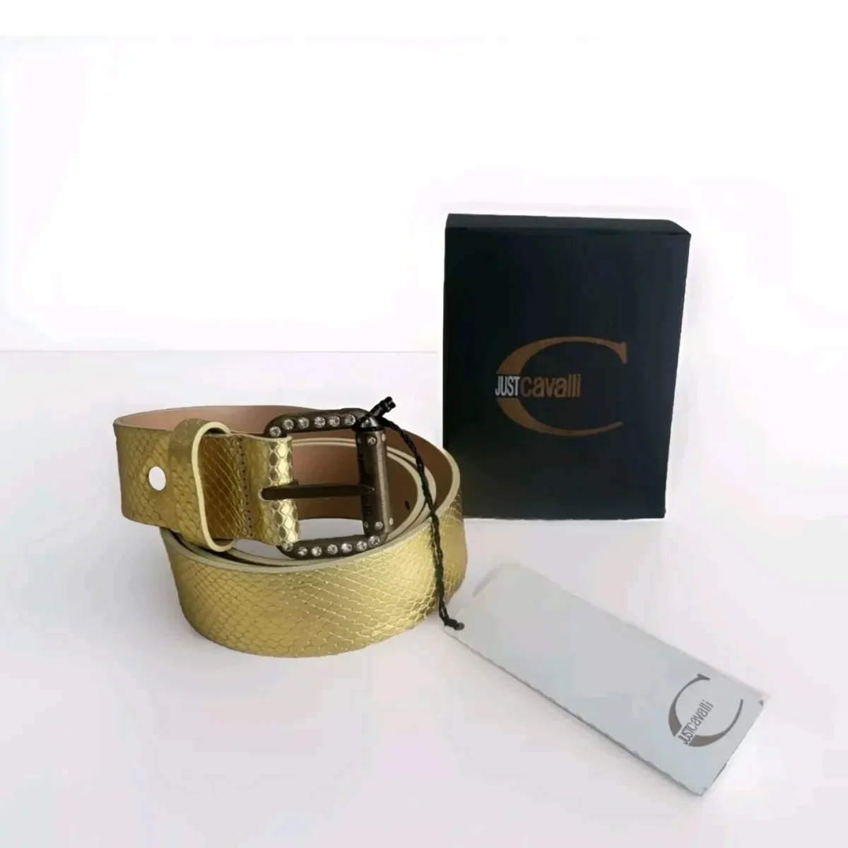 Just Cavalli cintura donna oro con fibbia bronzo con logo e strass, fantasia stampa pitone. Taglia 105 cm Altezza 4 cm Cintura accorciabile 100% WX Made in Italia