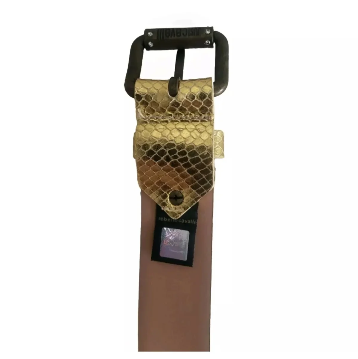 Just Cavalli cintura donna oro con fibbia bronzo con logo e strass, fantasia stampa pitone. Taglia 105 cm Altezza 4 cm Cintura accorciabile 100% WX
