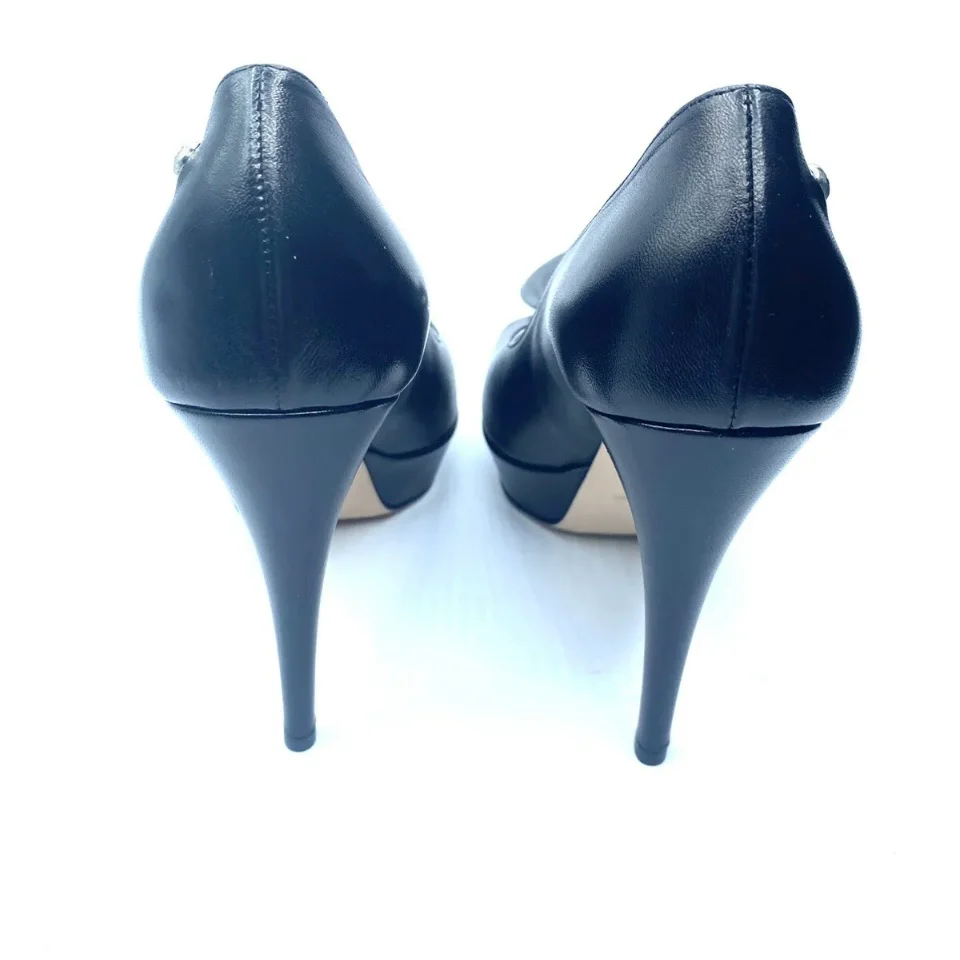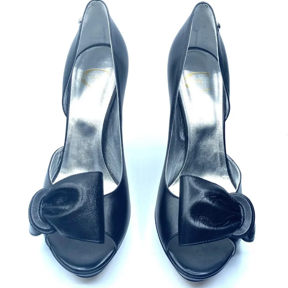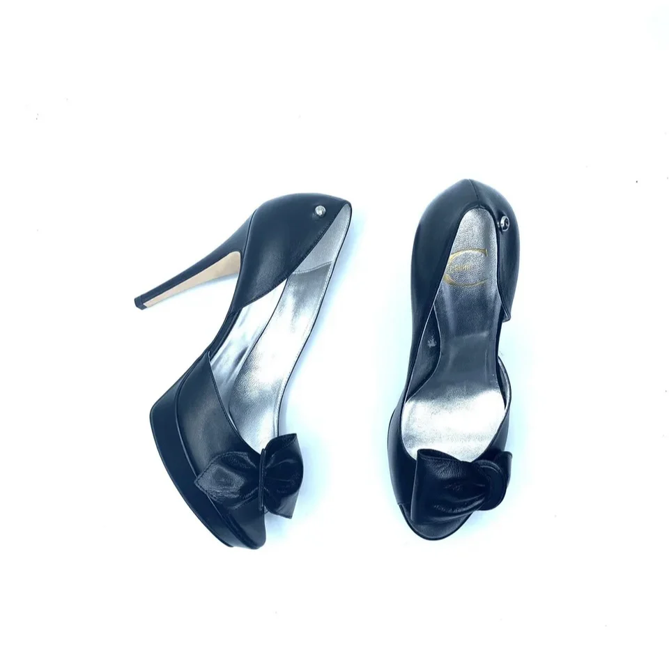 Vera pelle con fiocco, tacco a spillo di 12cm con plateau di 2 cm