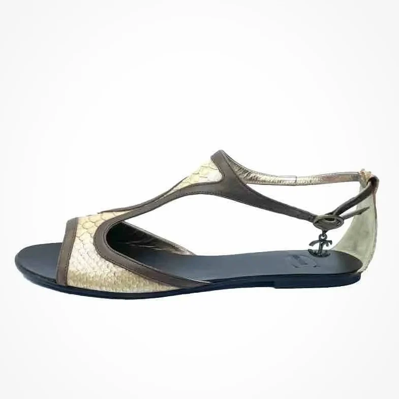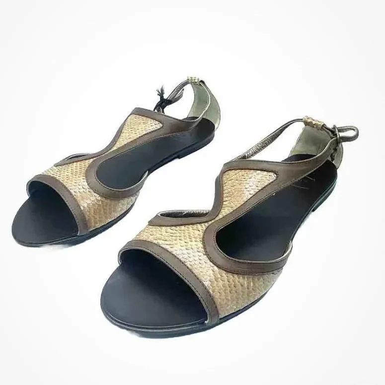 Sandali donna JUST CAVALLI in vera pelle color ocra pitone e con profilo marrone