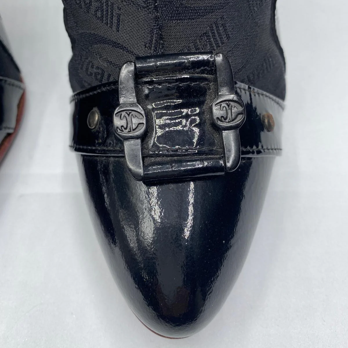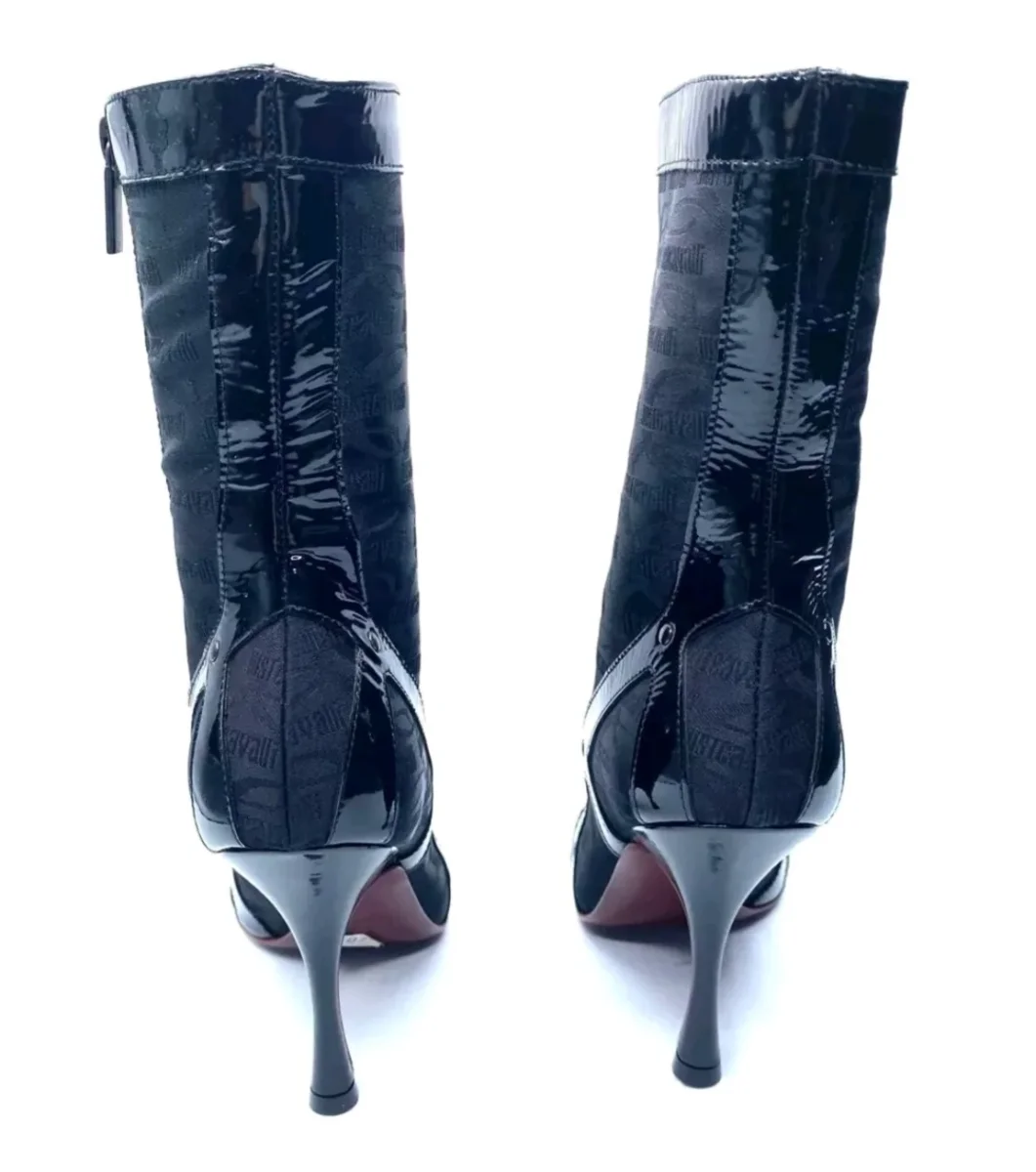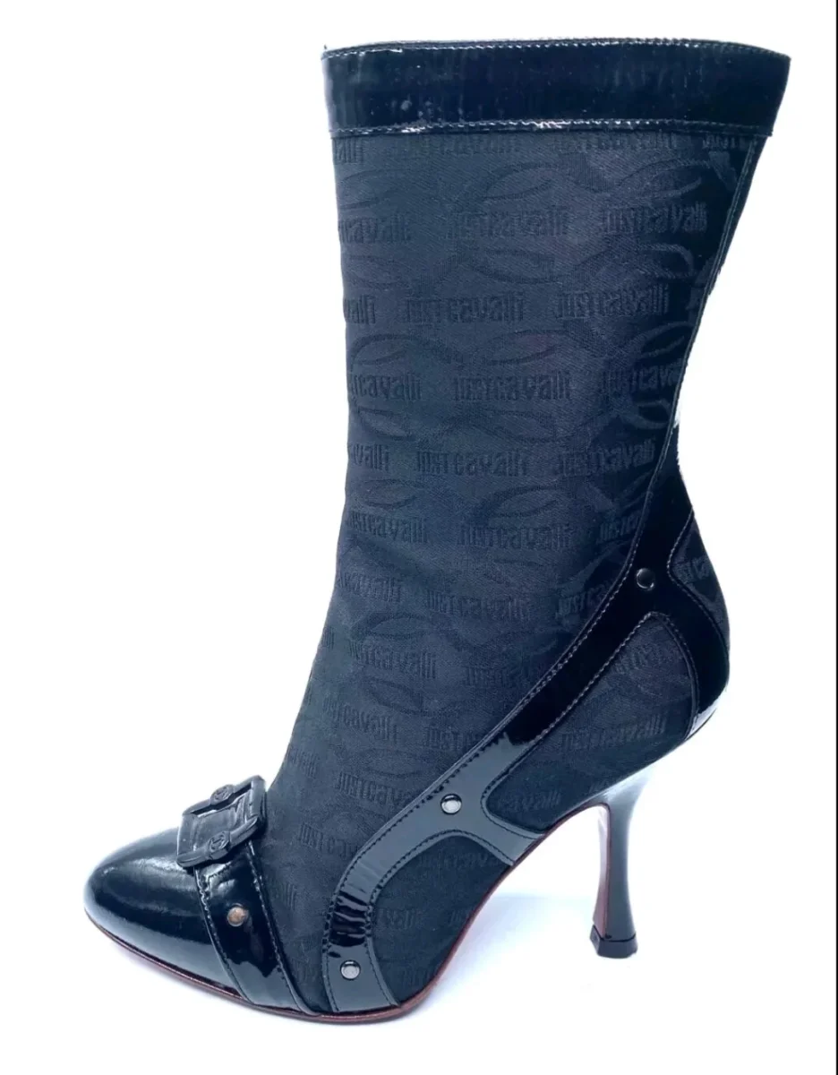 Bellissimi stivaletti Just Cavalli in vera pelle e tessuto con logo Just Cavalli stampato. Stivaletti neri originali