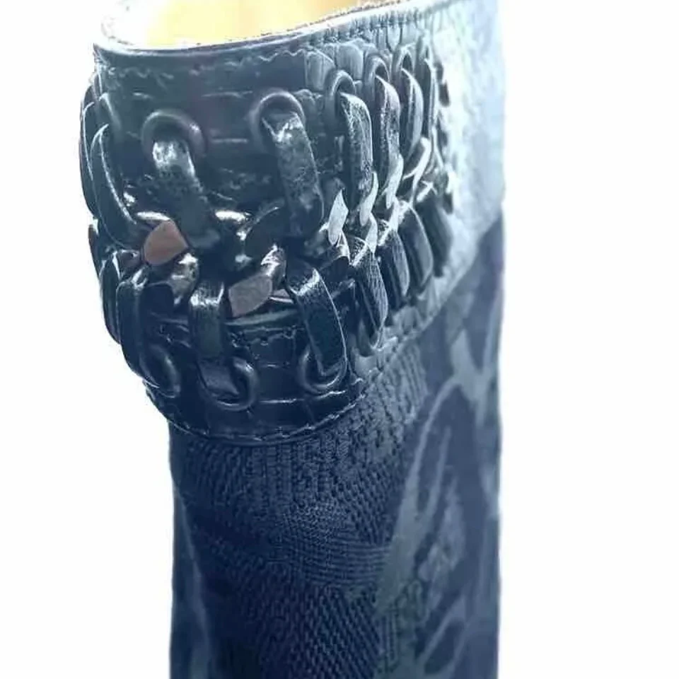 Bellissimi stivali alti Just Cavalli in vera pelle stampa coccodrillo e tessuto con stampa logata Just Cavalli. Stivali originali di colore nero numero 36, altezza tacco 9 cm Suola in pelle Soletta interna in pelle Nuovo con scatola e dust bag originale Mmade in Italy