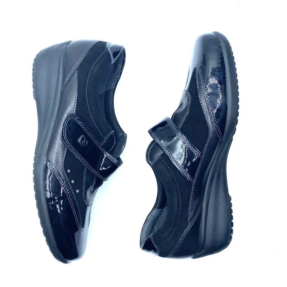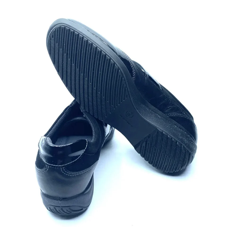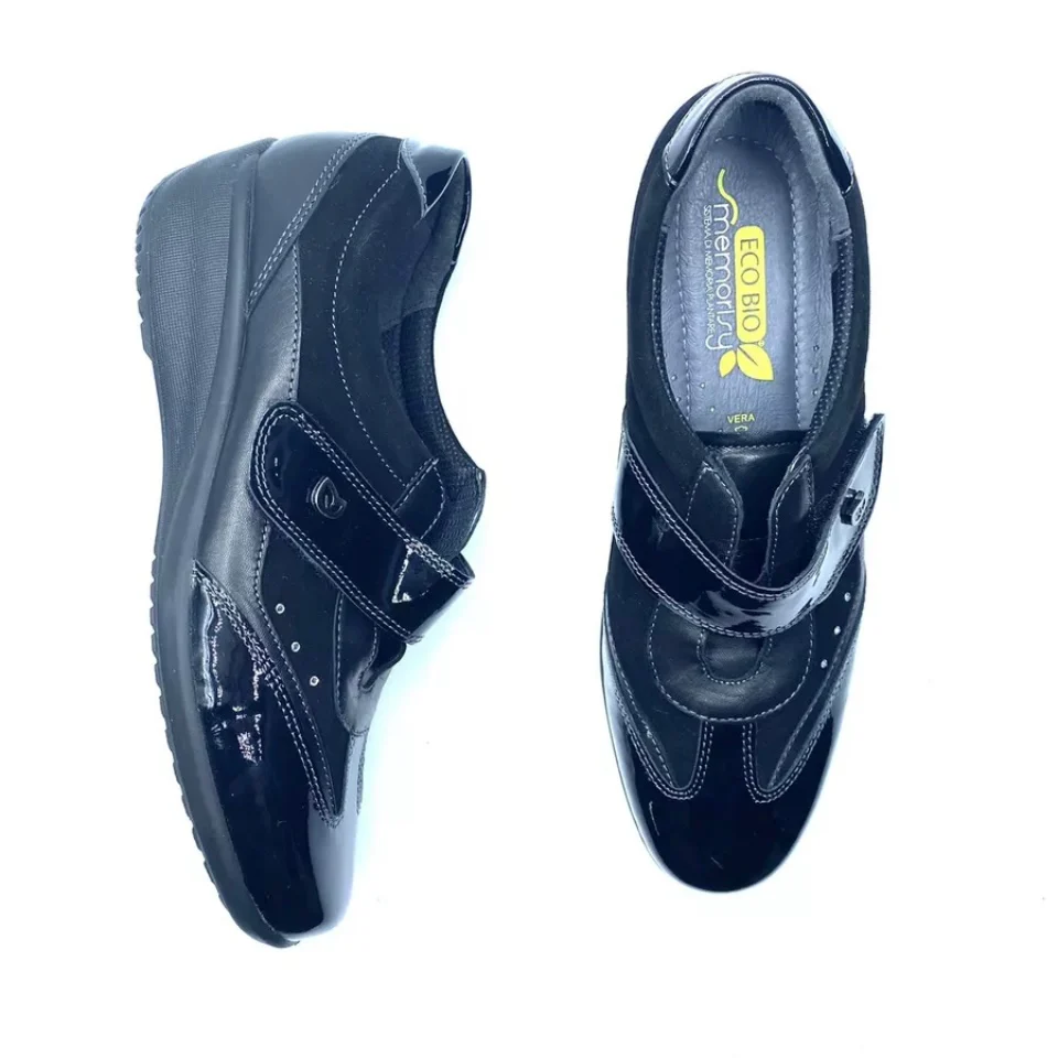 sneakers MISS ROBERTA moda comoda in vera ecopelle di colore nero con chiusura a strappo