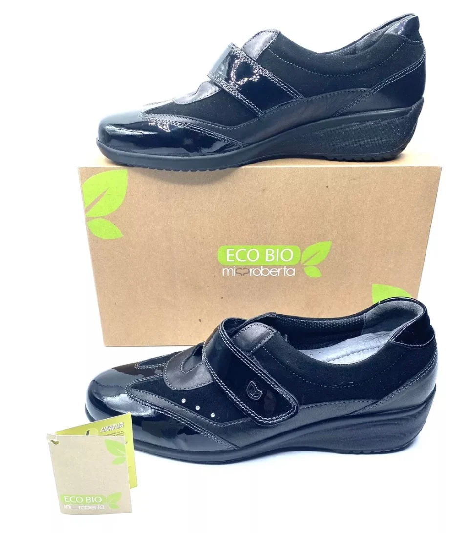 sneakers MISS ROBERTA moda comoda in vera ecopelle di colore nero con chiusura a strappo Fondo in gomma antiscivolo Plantare estraibile Fodera interna in tessuto Altezza zeppa 3 cm Numero 40 Lunghezza pianta interna tacco punta 26cm Made in Italy Il sottopiede eco Bío è realizzato con una schiuma di lattice naturale con estratti di […]