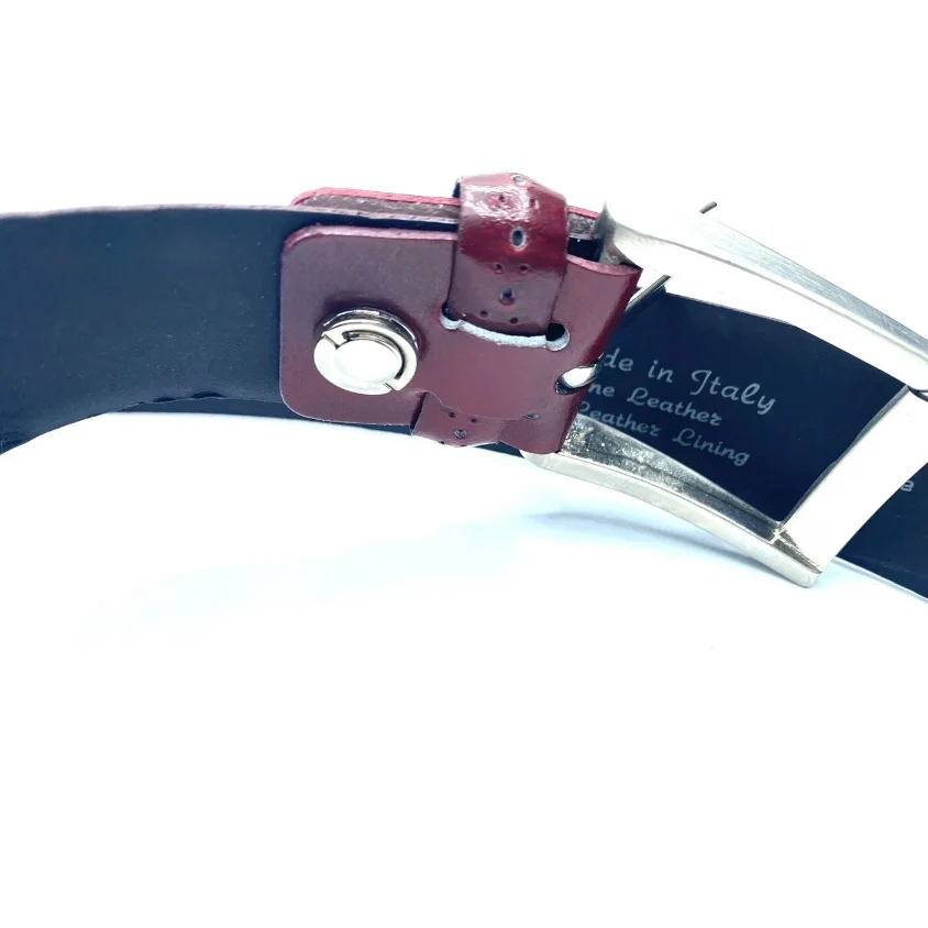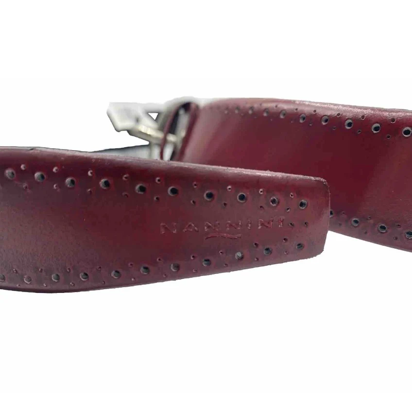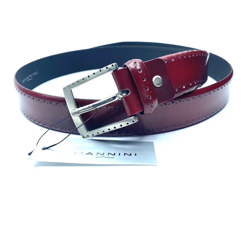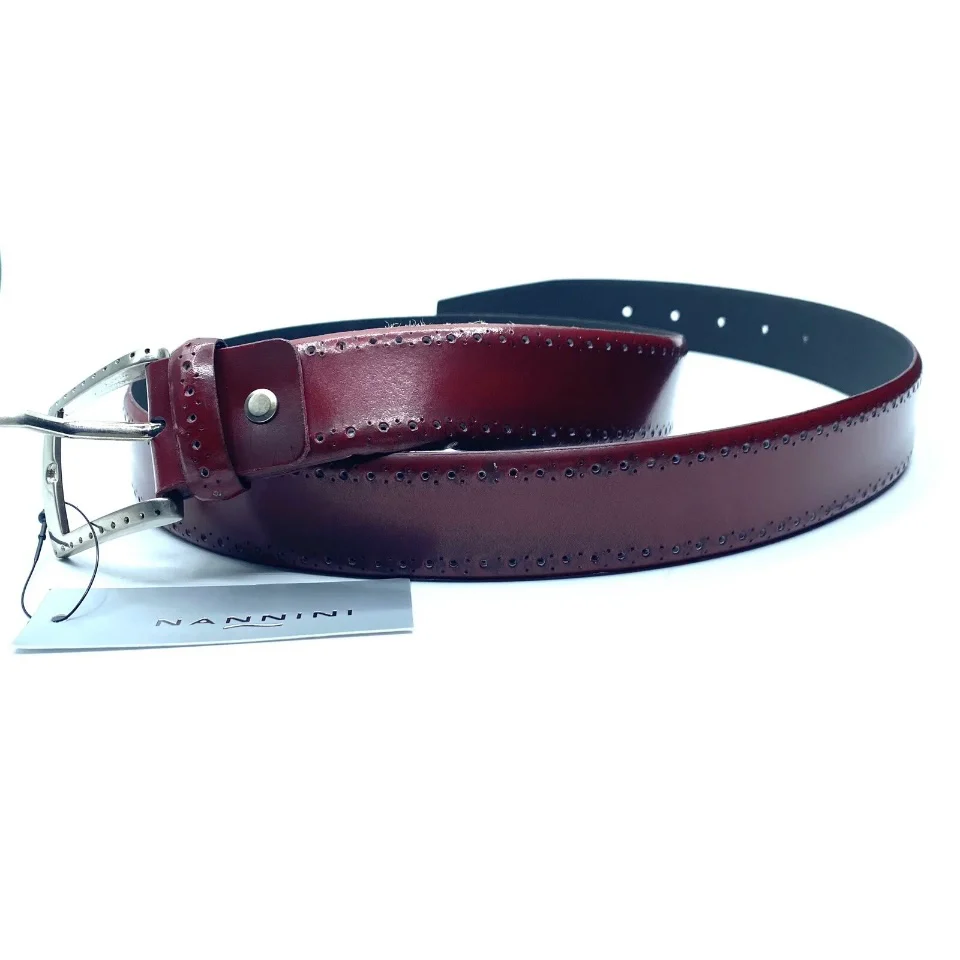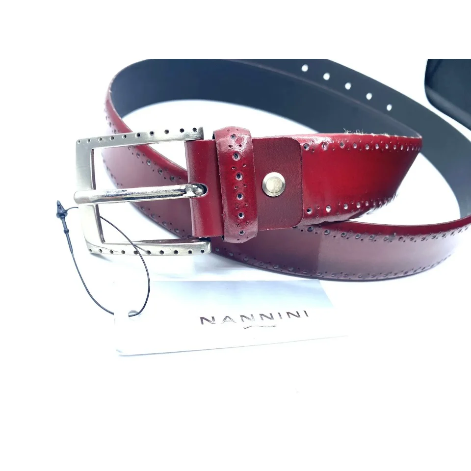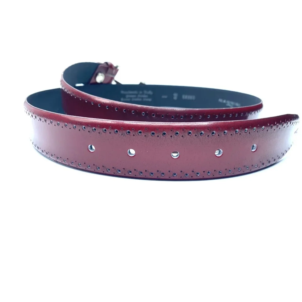 Cintura da donna Nannini color rubino in vera pelle liscia bucherellata ai bordi, fibbia in metallo, cintura fatta a mano Misura 105/120 Taglia 42 Cintura accorciabile Altezza 3,5 cm Made in Italia