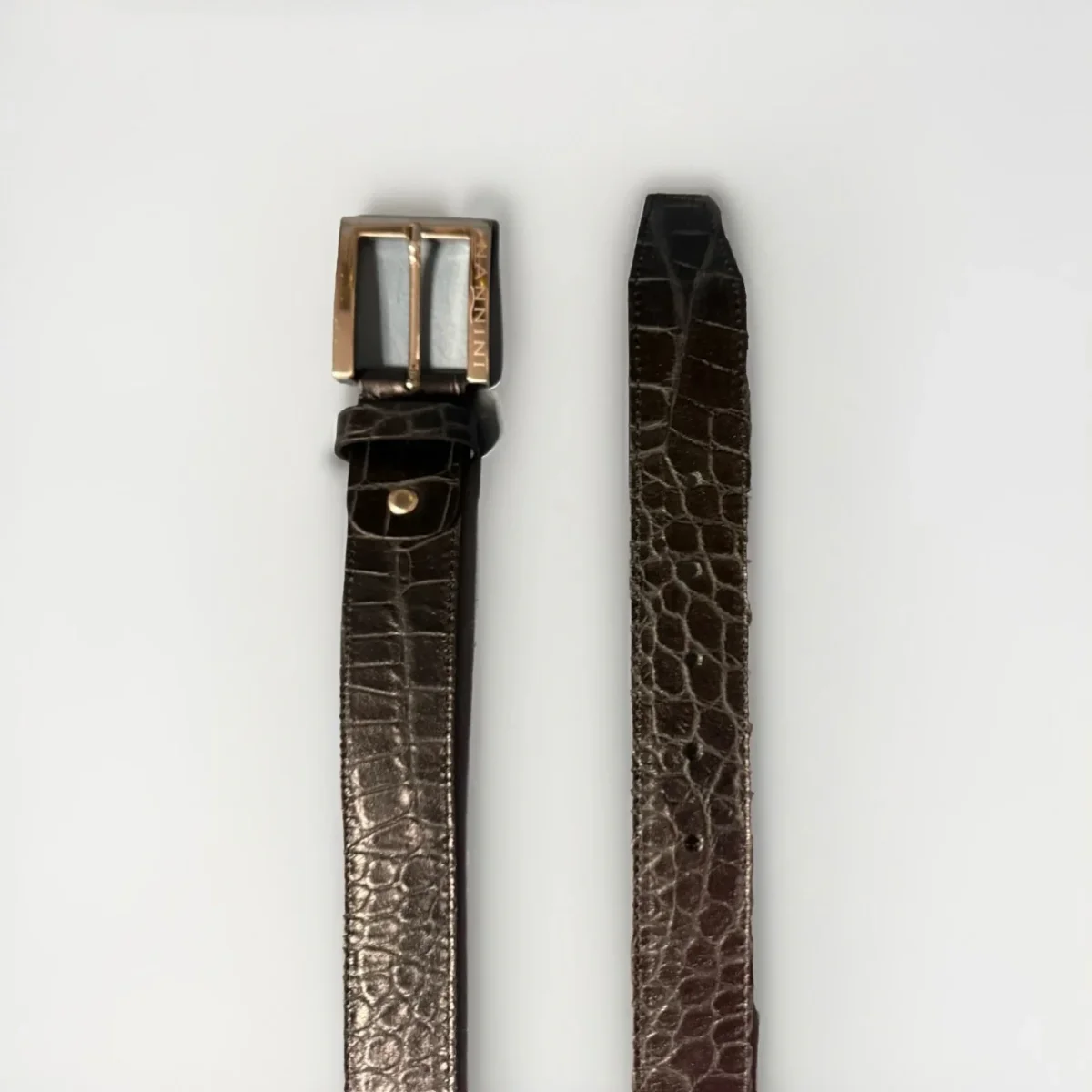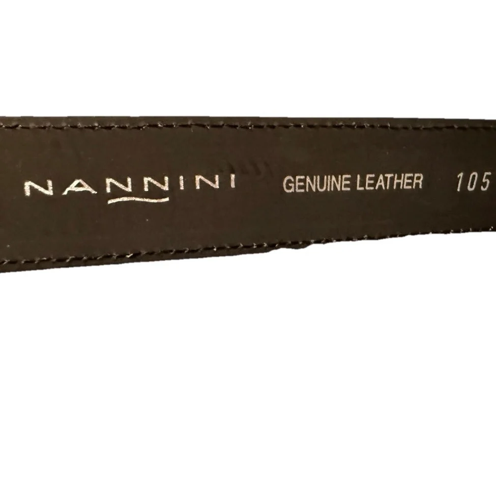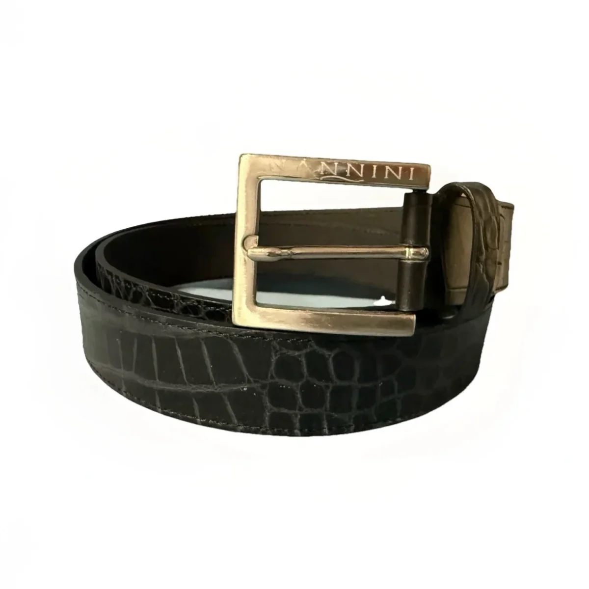 Cintura Nannini da uomo nera in vera pelle stampa cocco con fibbia in metallo con logo. Misura 105 Lunghezza totale 125 cm Cintura accorciabile Altezza 3,5 cm Made in Italia