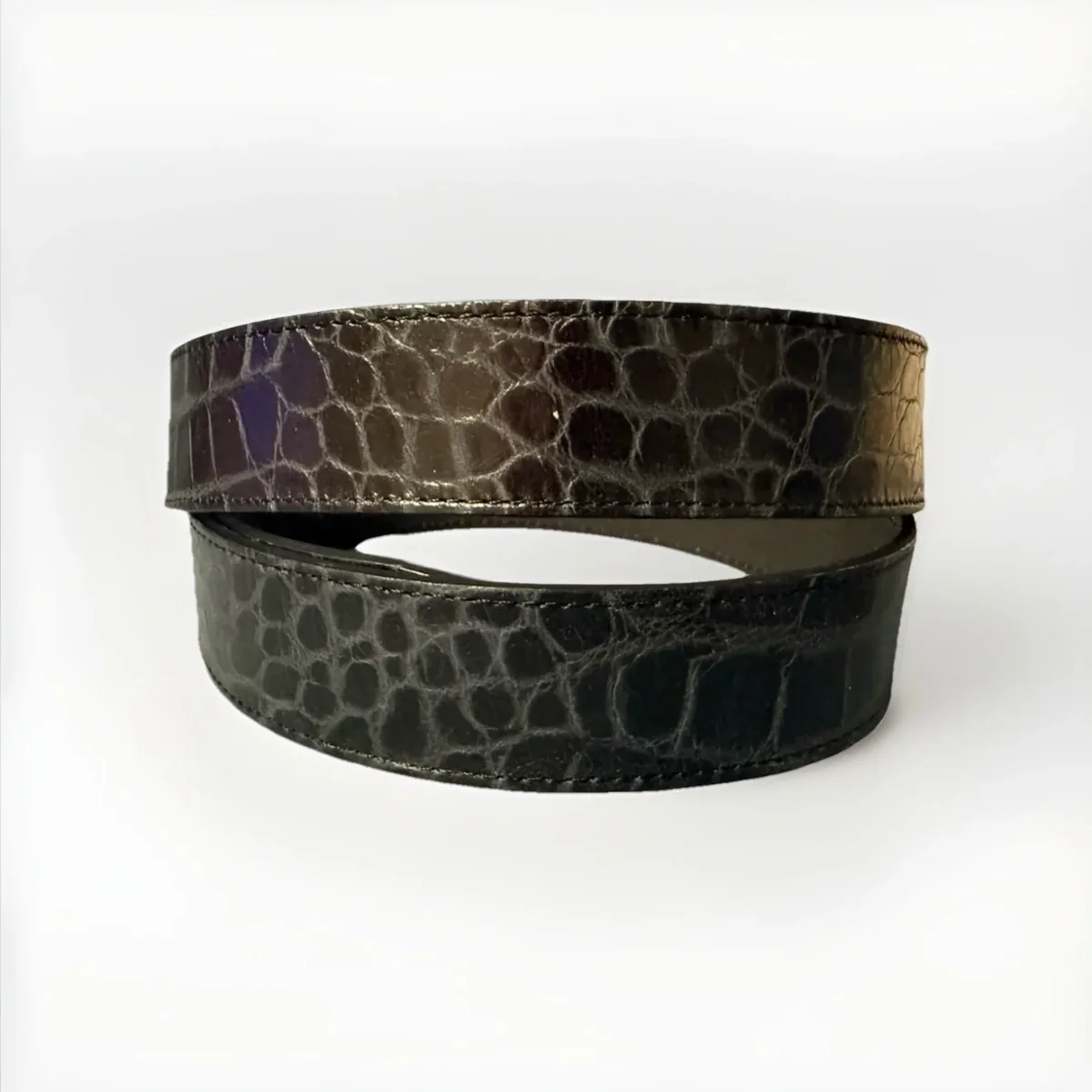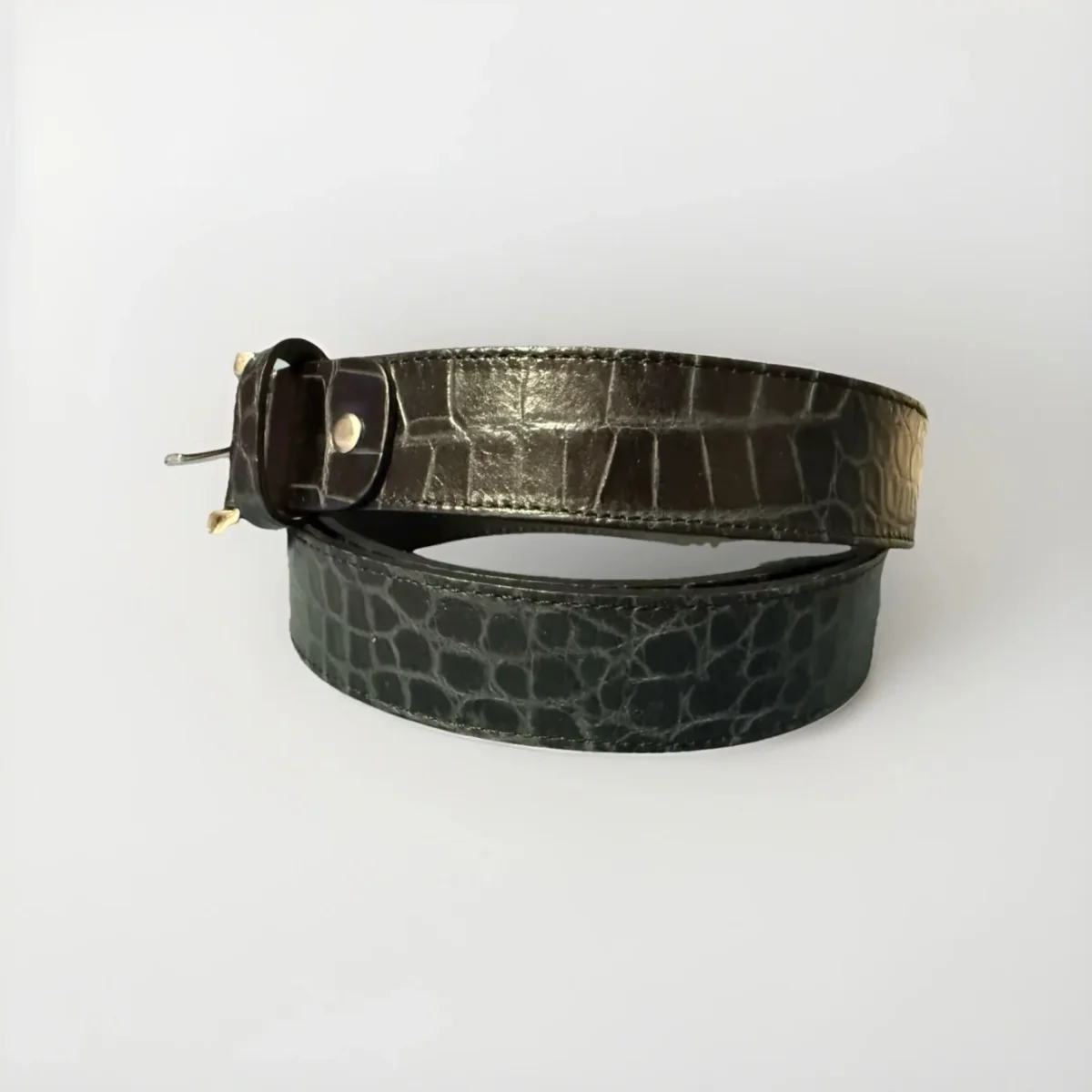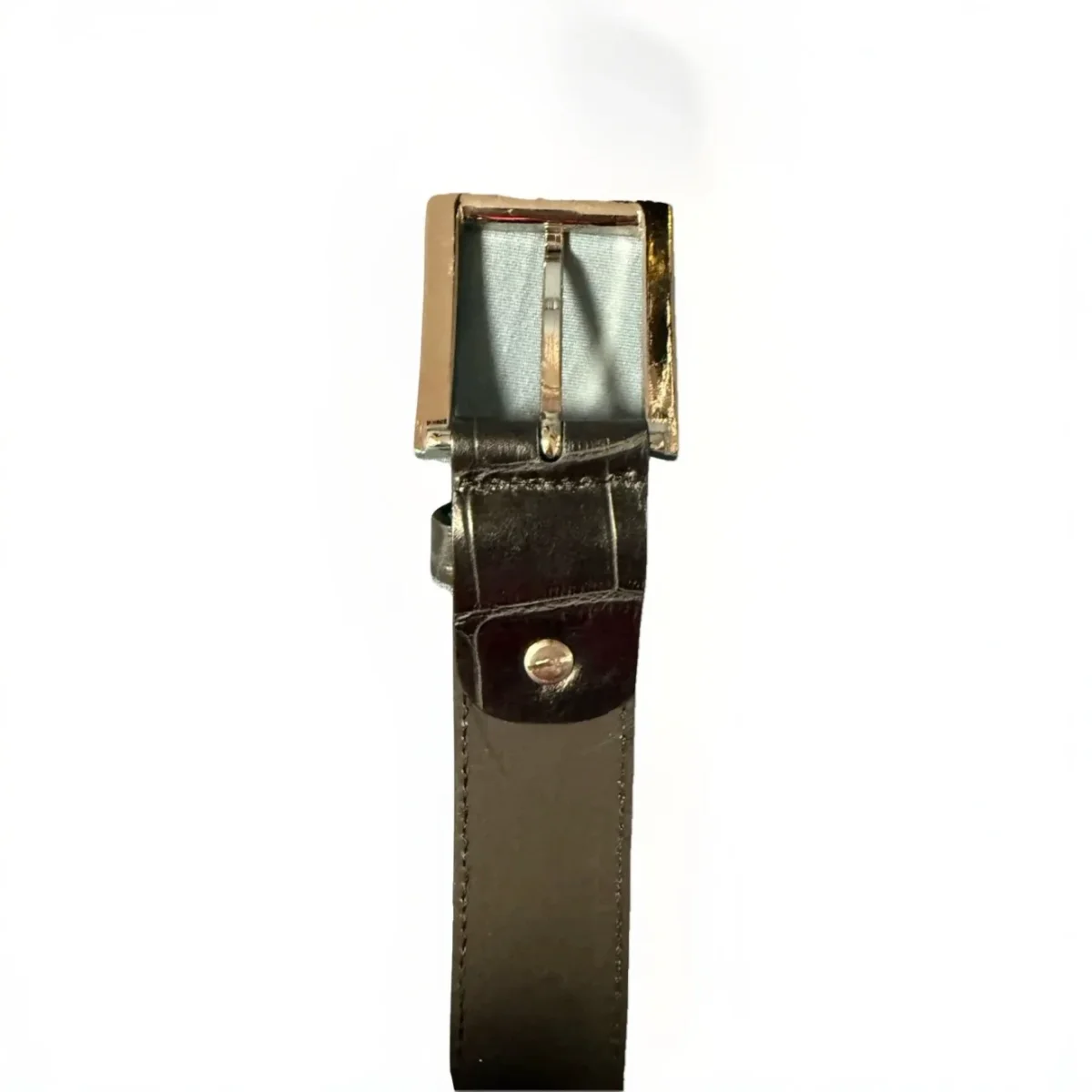 Cintura Nannini da uomo nera in vera pelle stampa cocco con fibbia in metallo con logo. Misura 105 Lunghezza totale 125 cm Cintura accorciabile Altezza 3,5 cm Made in Italia