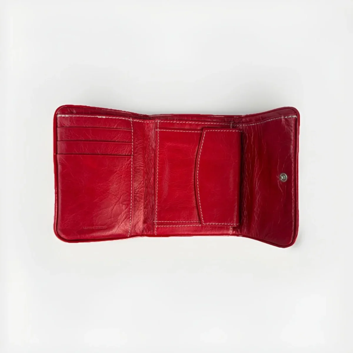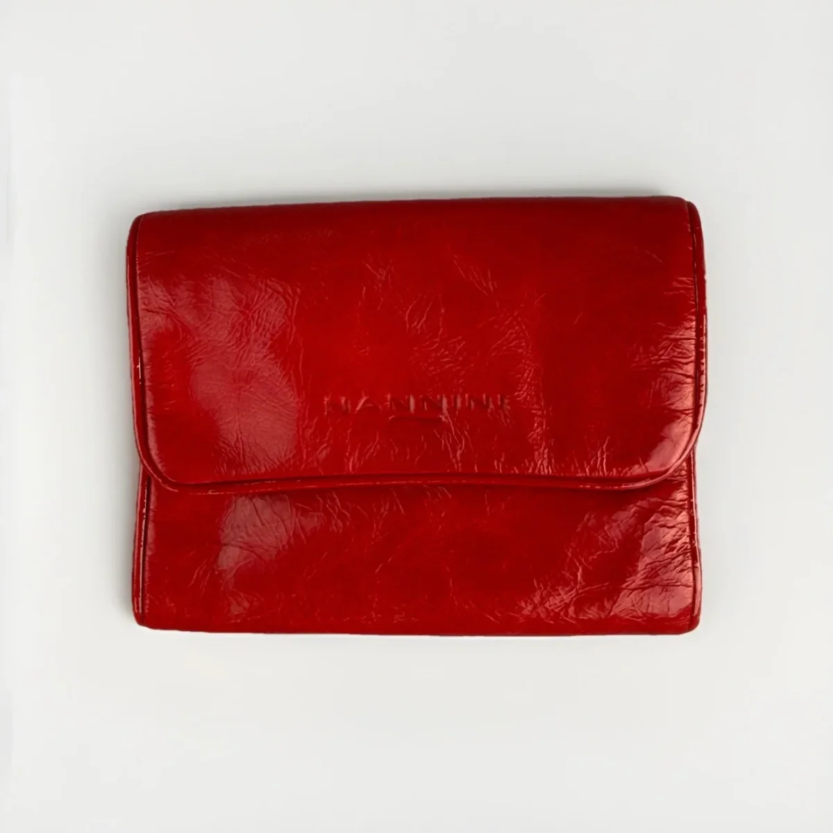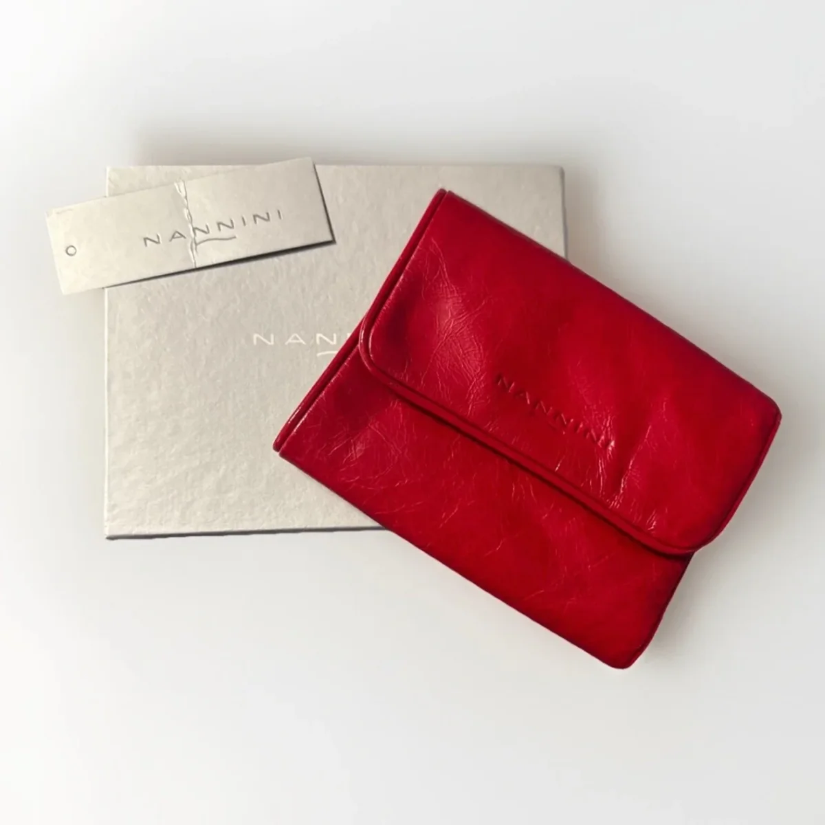 Portafoglio donna Nannini in vera pelle effetto invecchiato rosso rubino 3 Slot portacarte 3 Tasche portadocumenti 1 tasca porta banconote 1 tasca porta monete chiusa con bottone a pressione Portafoglio Chiuso con clip a pressione Misura: 13 cm × 10 x cm x 2 cm PELLAME MORBIDISSIMO! MADE IN ITALY
