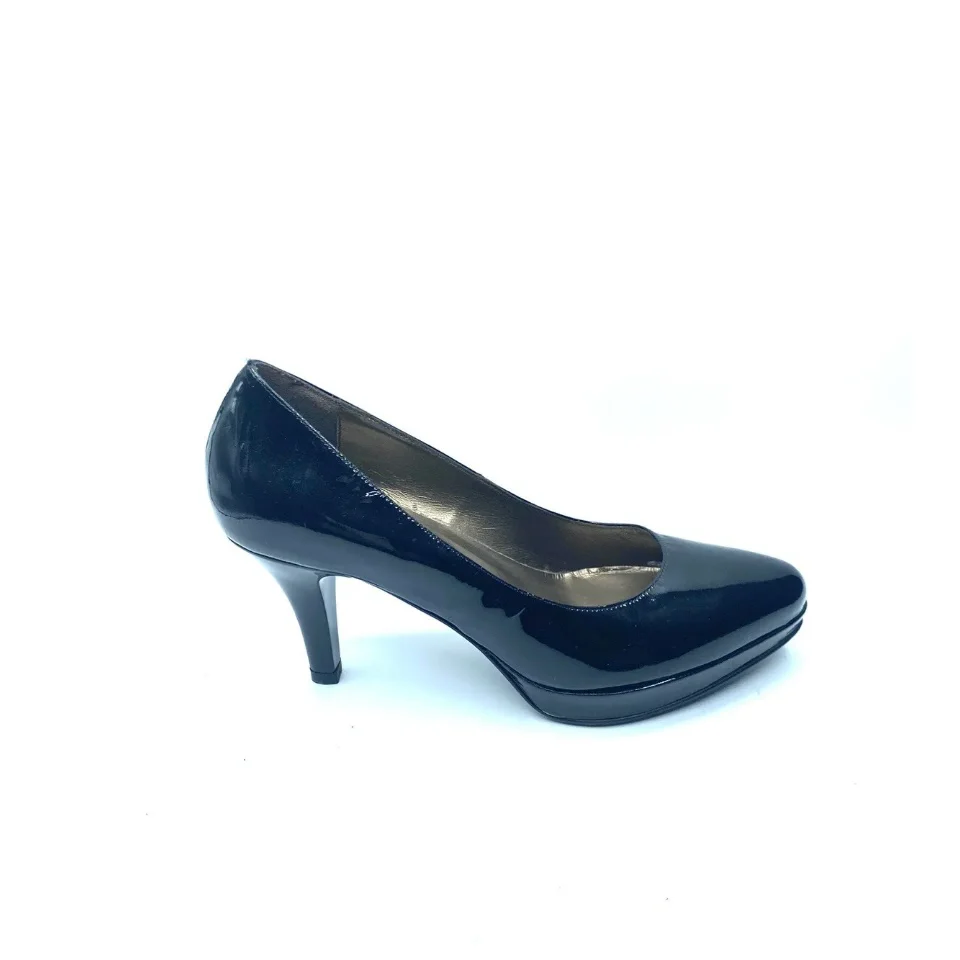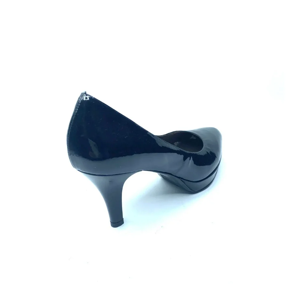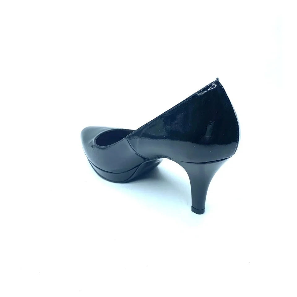 Decolletè da donna Nero Giardini made in Italy in vera pelle verniciata nera con tacco alto 7 cm. Il sottopiede in vera pelle e il fondo in gomma garantiscono un buon comfort. Look grintoso e alla moda