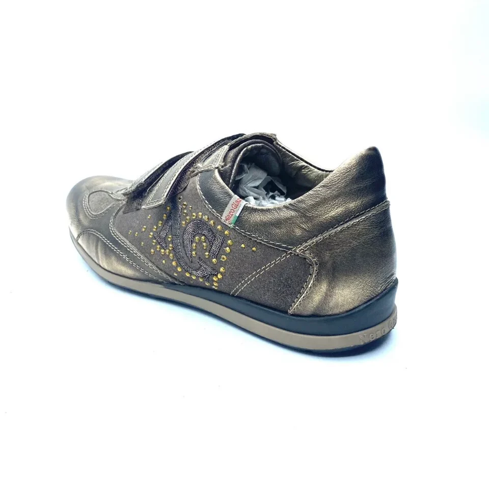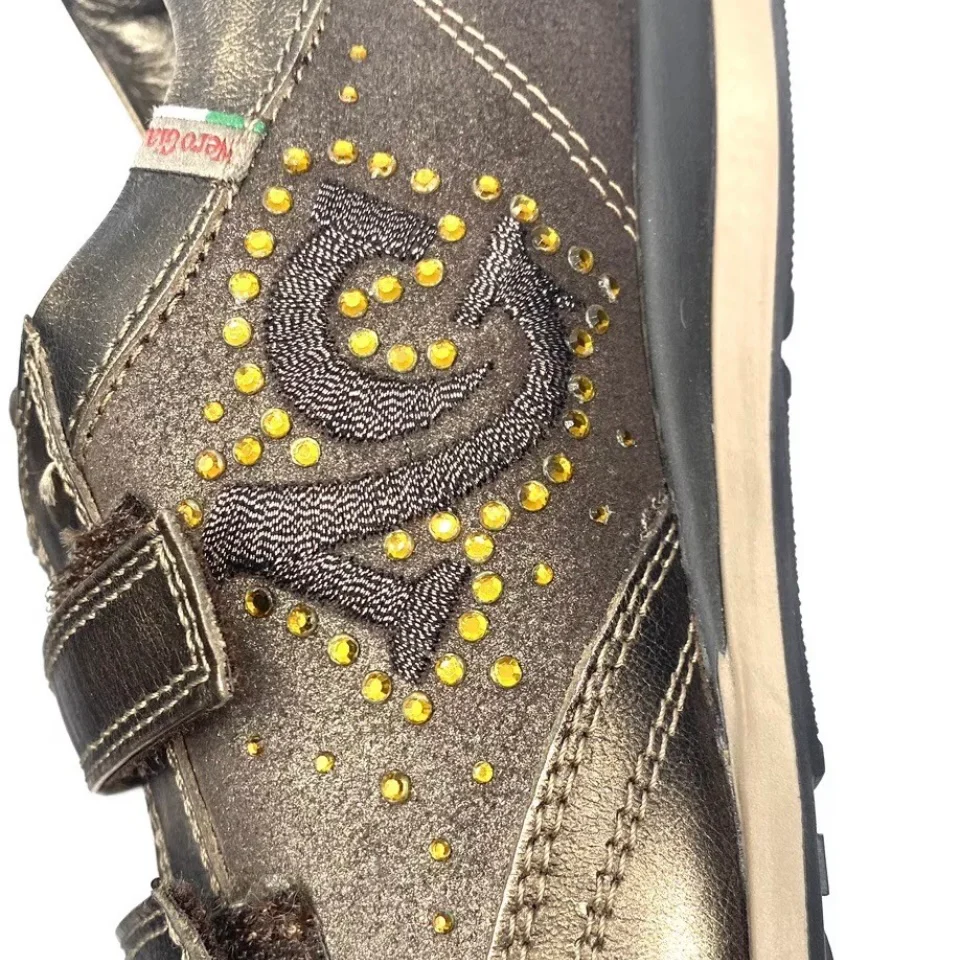 Due strappi è un design che solo il brand nero giardini si distingue con queste tendenze invernali sempre innovative, una sneakers molto bella nel design, realizzata in pelle ed di colore bronzo, scarpa comodissima