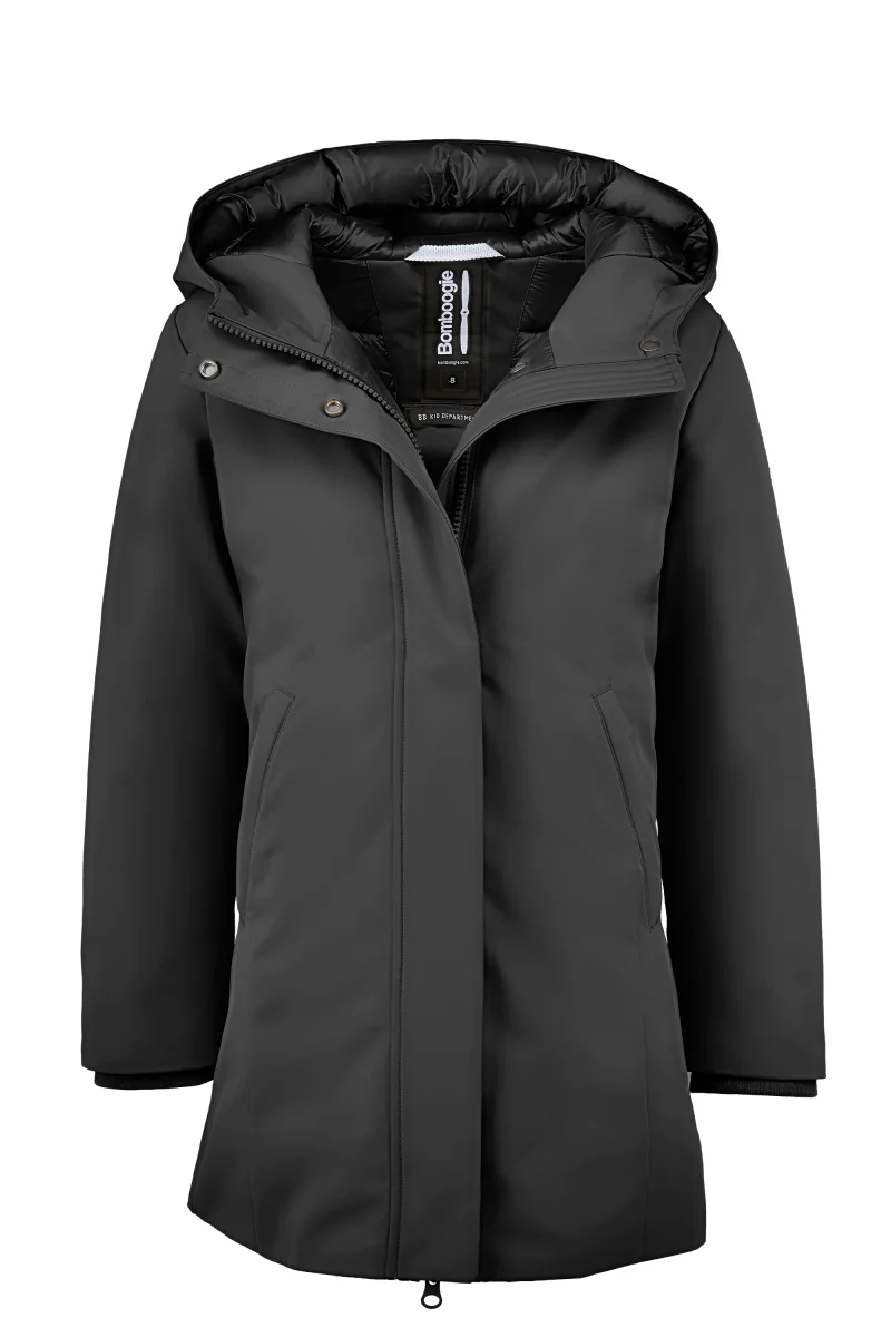 Parka lungo da bambina slim fit con cappuccio waterproof e windproof