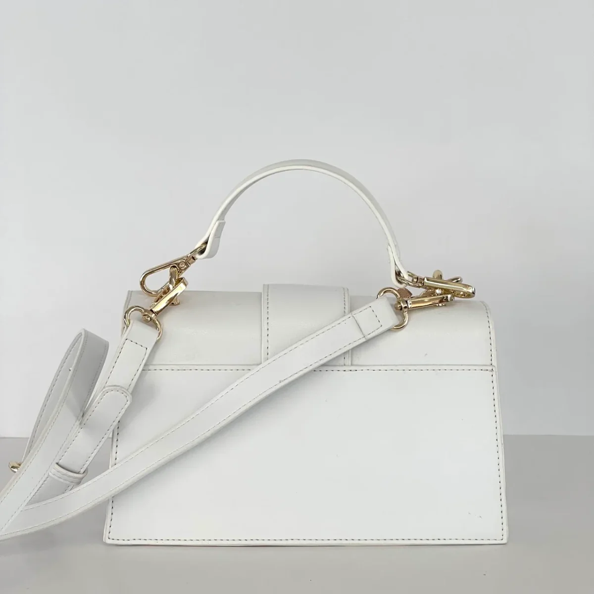 Chiusura con bottone magnetico, tracolla sganciabile e regolabile.