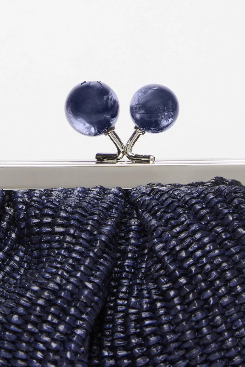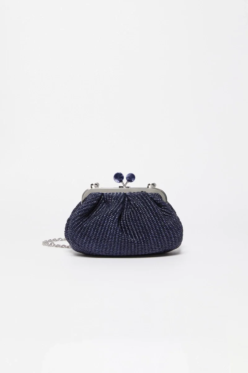 Pasticcino Bag small, la super clutch per dare un tocco personale e affascinante al tuo stile quotidiano. Realizzata in tessuto effetto rafia e interno foderato in twill a righe con comoda tasca portaoggetti e label Weekend Max Mara. La tracolla rimovibile a catena con spallaccio in pelle, permette di indossare la borsa crossbody o a mano grazie al doppio attacco laterale e in testa, per un outfit versatile e di tendenza. L’iconica chiusura clutch con boules è rifinita con logo a farfalla inciso e logo Weekend Max Mara. Dimensioni: 19 x 10 x 15 cm.Composizione:52% cotone, 48% poliammide; fodera in 100%poliestere.
