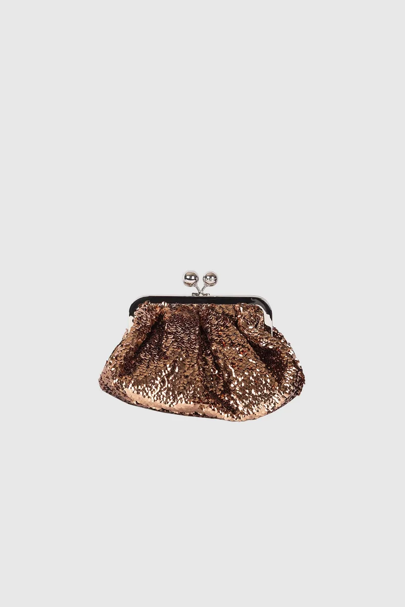 Pasticcino Bag small, la super clutch per dare un tocco personale e affascinante al tuo stile quotidiano. Borsa in raso interamente ricoperta da paillettes concave sagomateFodera interna con label personalizzataTracolla rimovibile a catena con spallaccio in pelleChiusura metallica con sfere personalizzate Weekend Max MaraDimensioni: 19 x 10 x 15 cmPeso: 450 gComposizione e lavaggioBorsa in […]