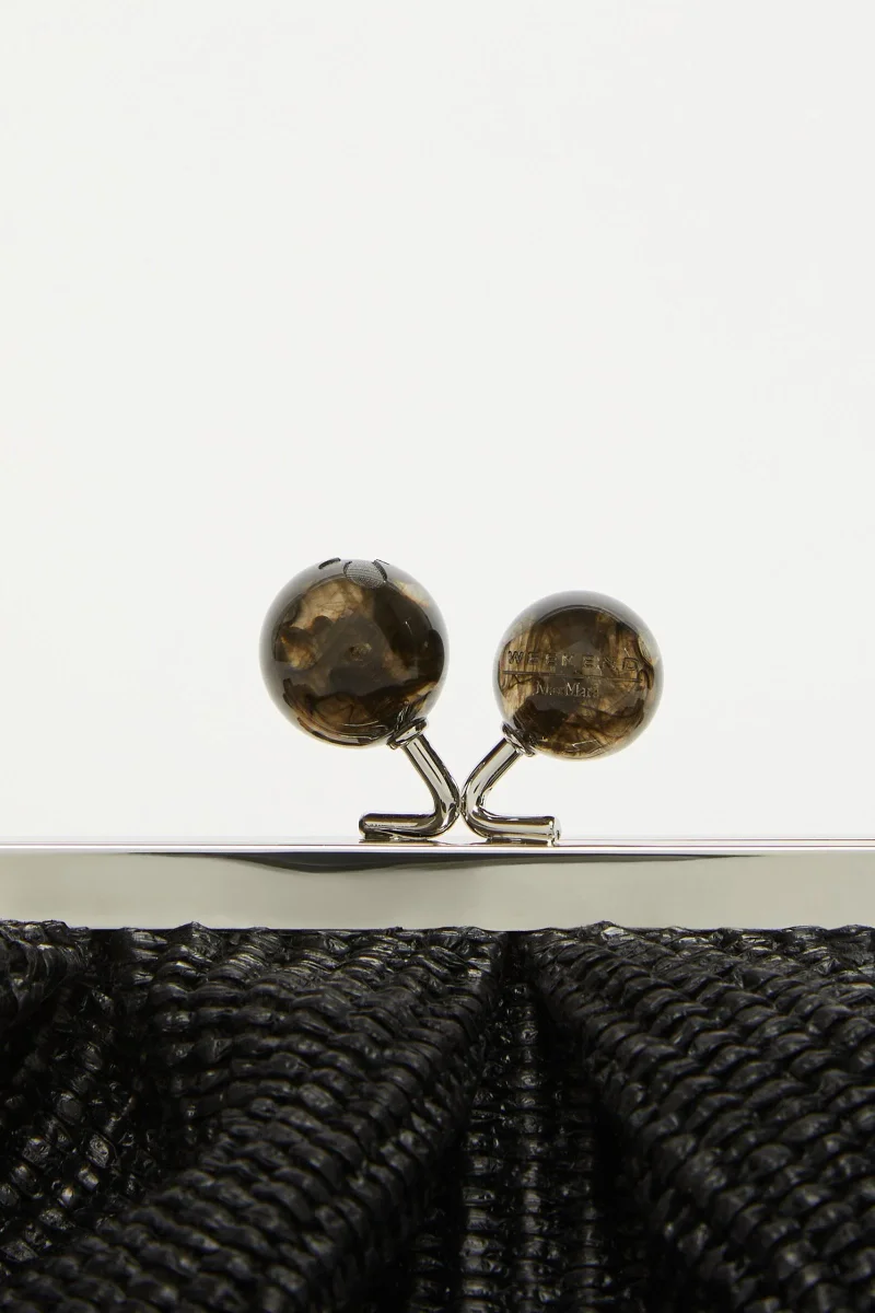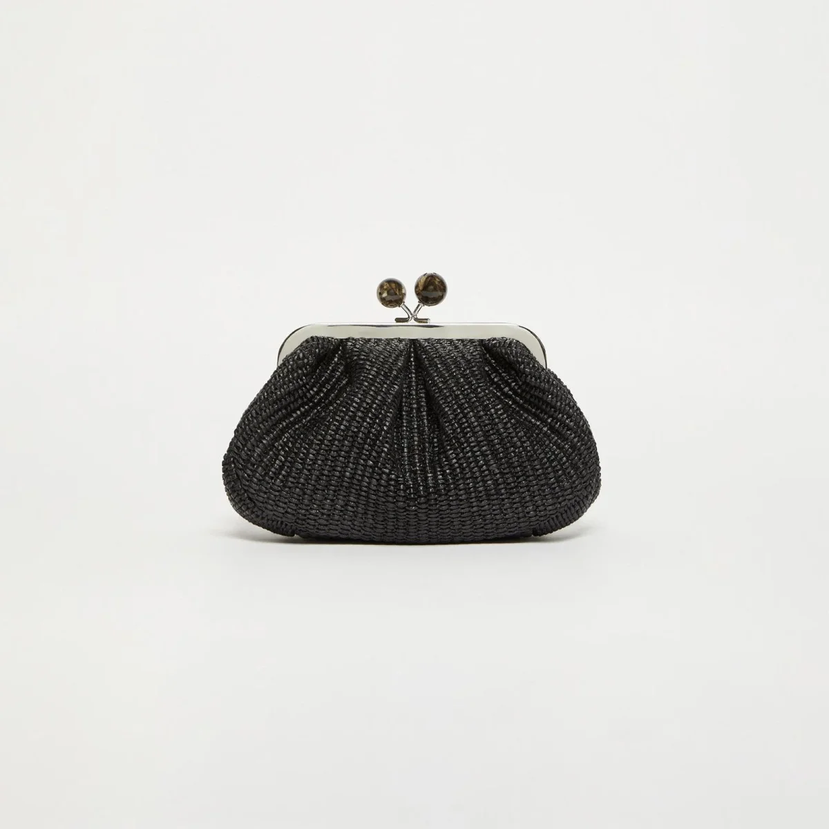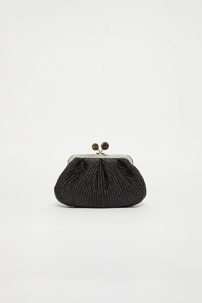 Pasticcino Bag small, la super clutch per dare un tocco personale e affascinante al tuo stile quotidiano. Realizzata in tessuto effetto rafia e interno foderato in twill a righe con comoda tasca portaoggetti e label Weekend Max Mara. La tracolla rimovibile a catena con spallaccio in pelle, permette di indossare la borsa crossbody o a mano grazie al doppio attacco laterale e in testa, per un outfit versatile e di tendenza. L’iconica chiusura clutch con boules è rifinita con logo a farfalla inciso e logo Weekend Max Mara. Dimensioni: 19 x 10 x 15 cm.Composizione:52% cotone, 48% poliammide; fodera in 100%poliestere.