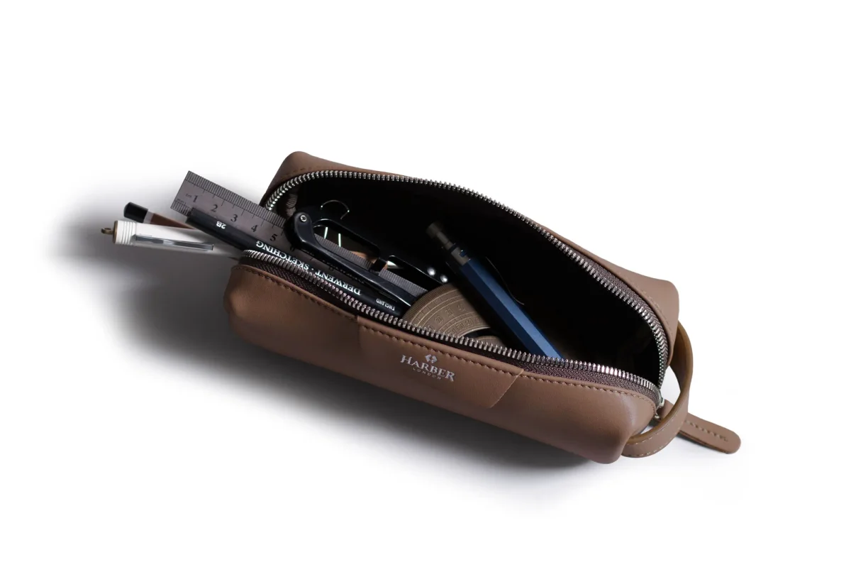 • Water-Repellent inside out.• Clean Design, Classic Looks.• Leather Free, looks and feels like leather.• Side Strap for one-finger carry.• Easily switch to carry from office accessories to toiletries and anything in-between.• Wide opening avoids rummaging.• Soft to the touch.• Expertly handcrafted by us, in our workshop in Spain.