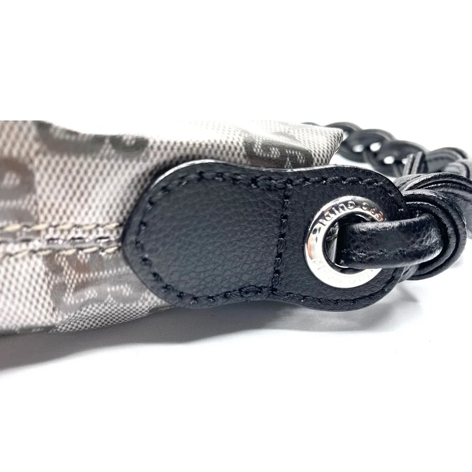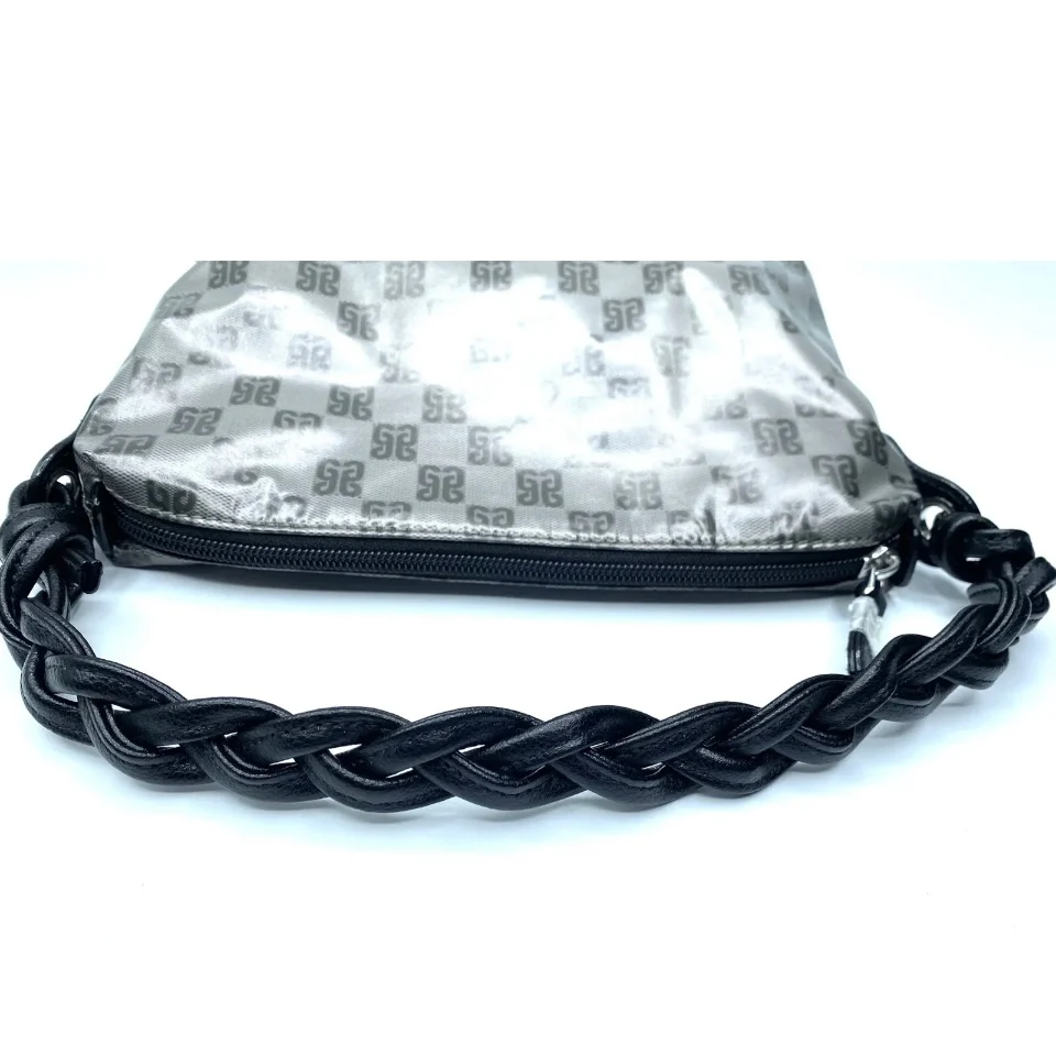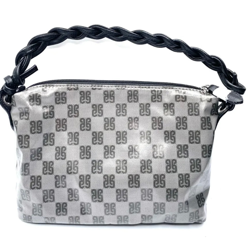 Borsina Realizzata in tessuto impermeabile con stampa Monogramma. Manico in vera pelle intrecciata Finiture in metallo Fodera e tasca interna con zip e tasca aperta Borsa chiusa con zip Misure: 24 x 16 x 8 cm Made in italy
