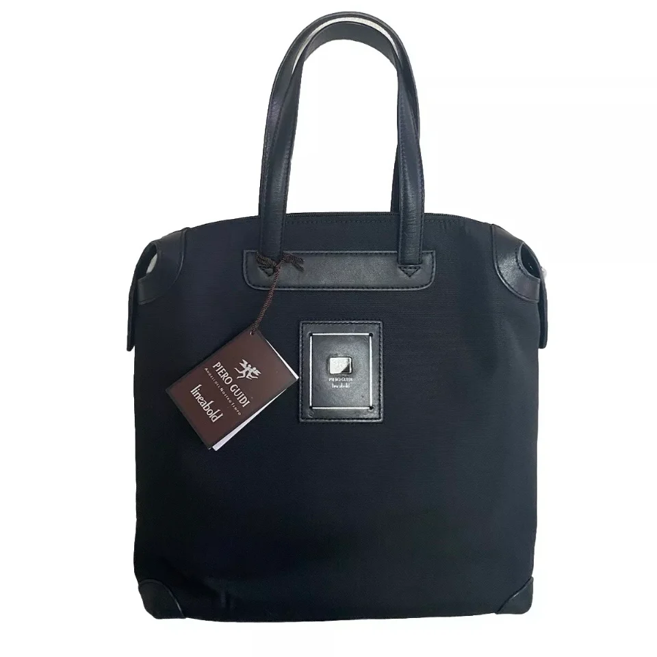 Piero Guidi Borsa business in tessuto tecnico impermeabile e inserti in vera pelle di vitello Da portare a mano di colore nero chiusa con zip a doppio cursore da portare a spalla. Internamente 3 tasche aperte 7 Slot portacarte/biglietti da visita e spazi portapenne Dimensioni 32 x 32 x 12 cm Made in italy