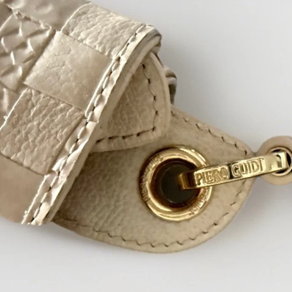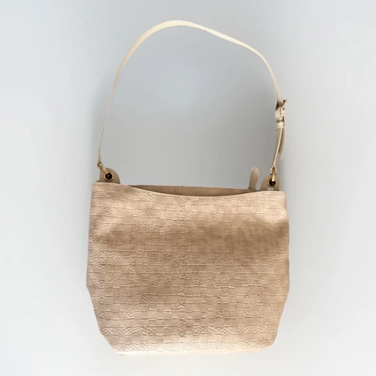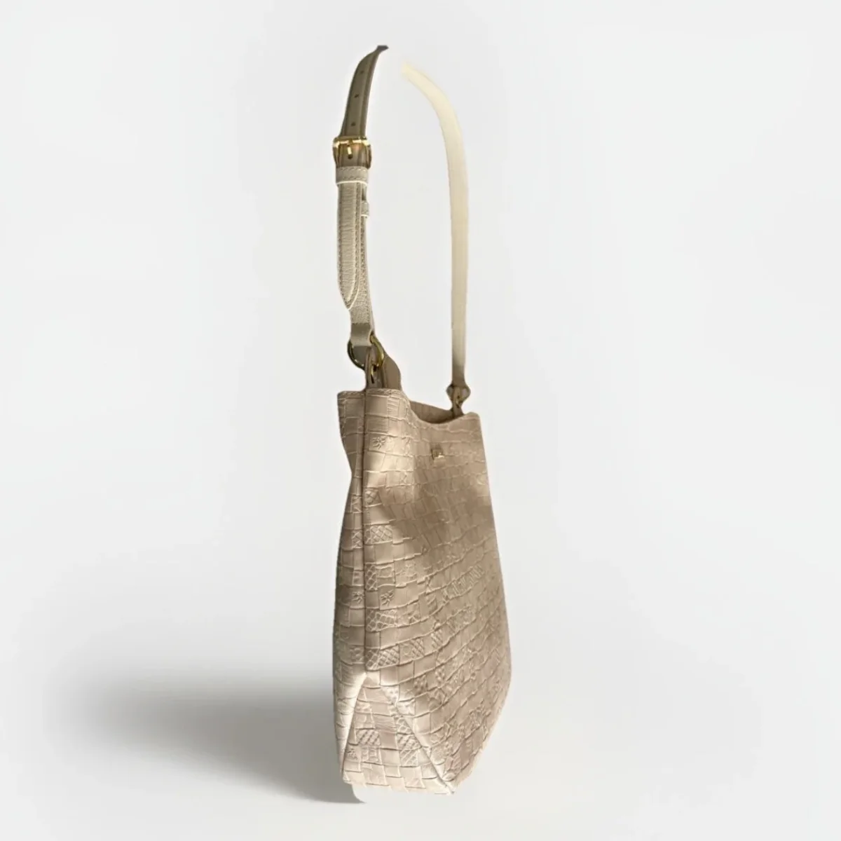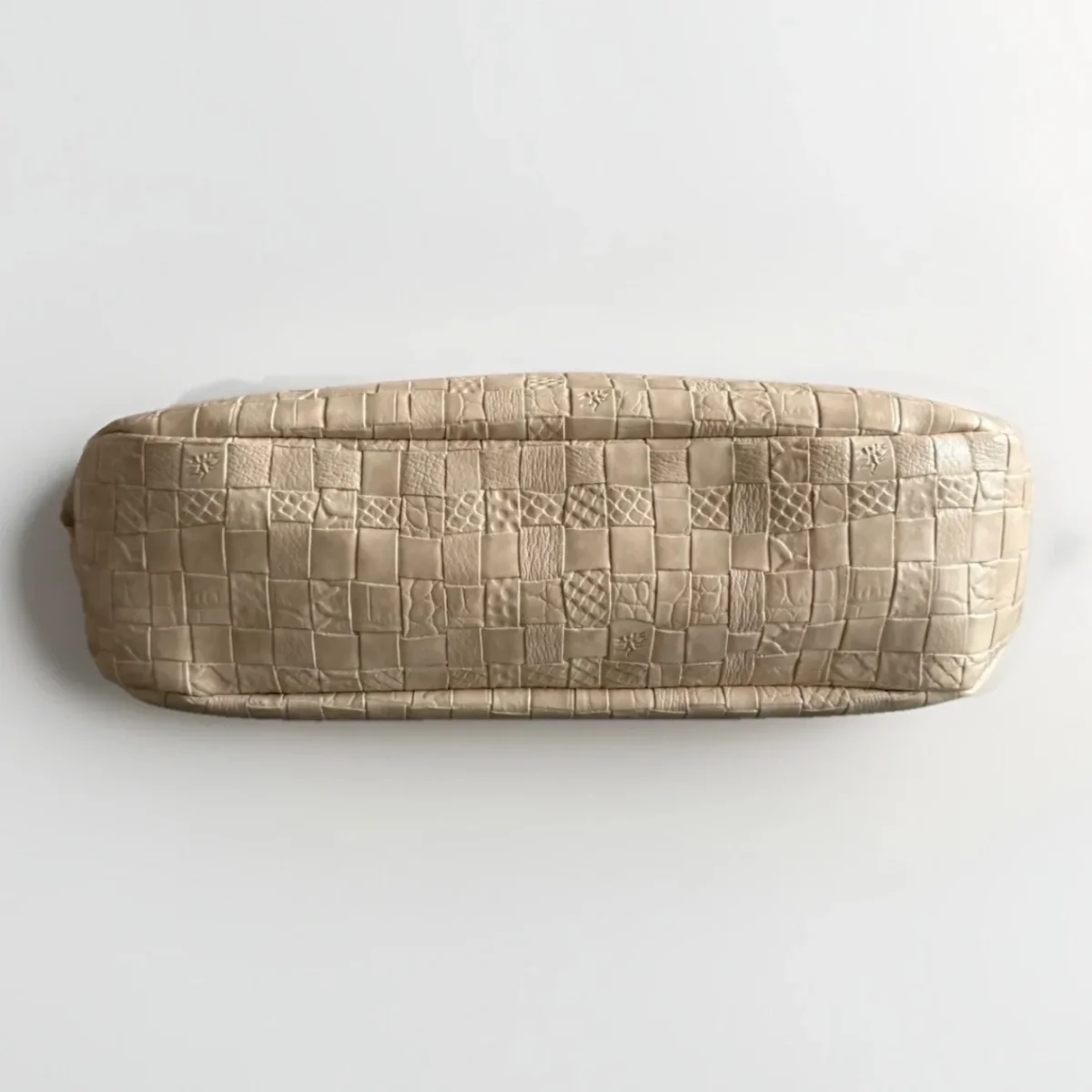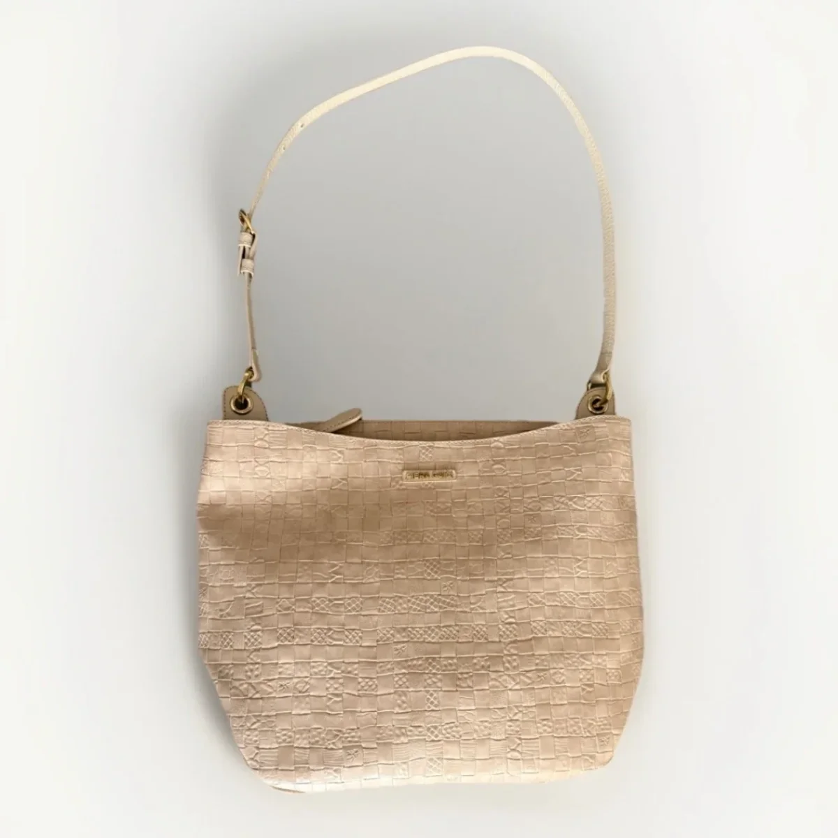 Piero Guidi Borsa a spalla realizzata in tessuto goffrato a rilievo con stampa intreccio, inserti in pelle.