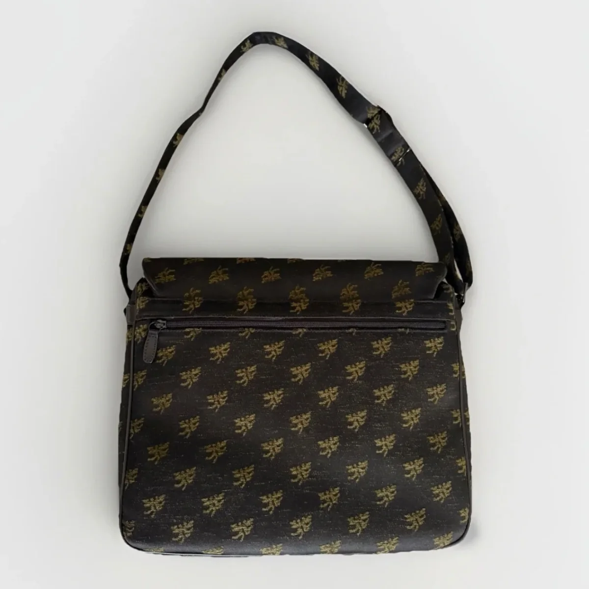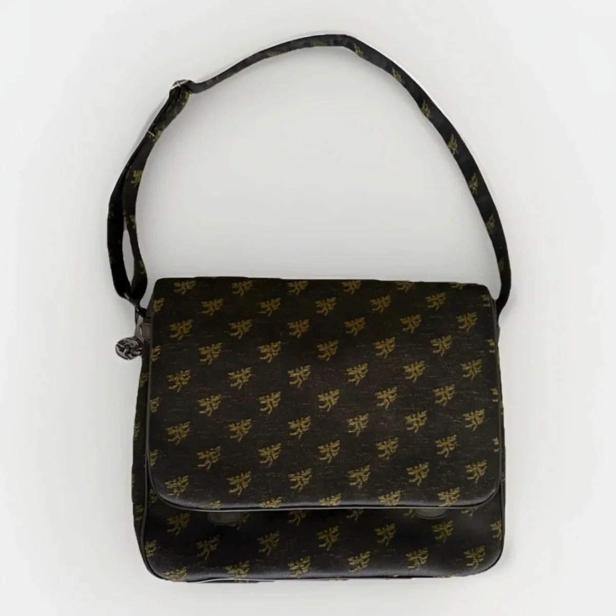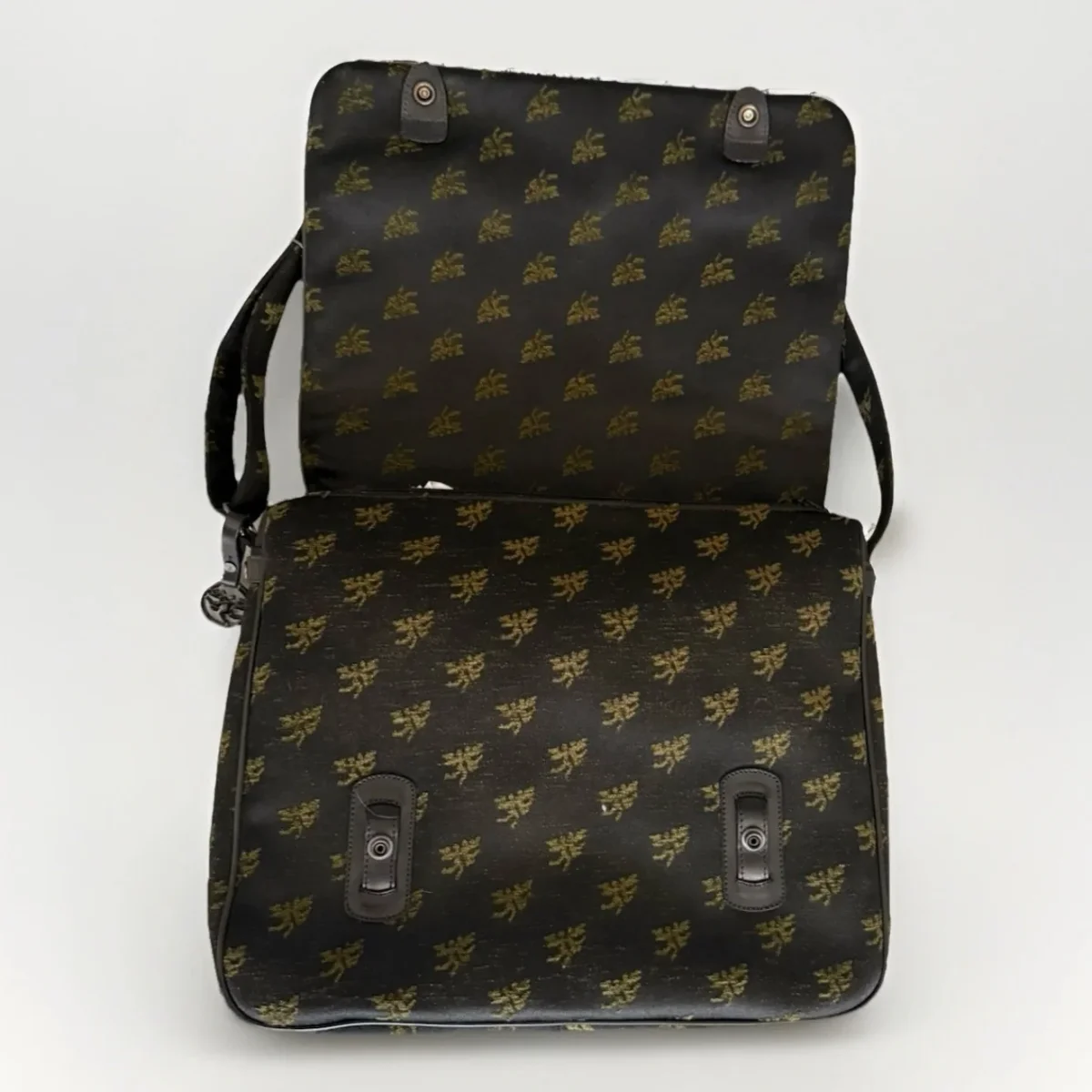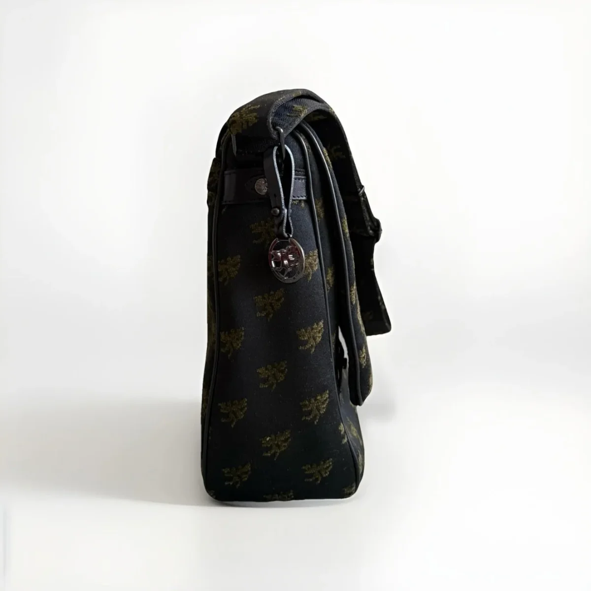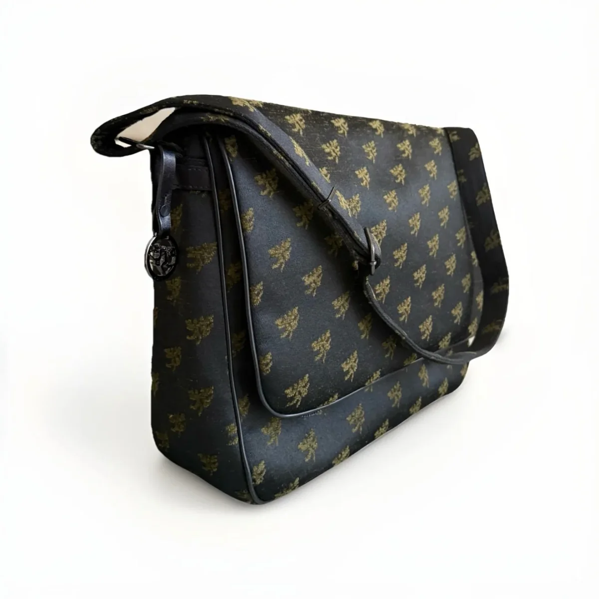 PIERO GUIDI borsa cartella con patta in tessuto con inserti in pelle nera Chiusura con zip e doppio bottone automatico Fodera interna in tessuto nero con stampa Magic Circus Tasca interna chiusa da zip Borsa da portare a spalla o a tracolla Tracolla regolabile Dimensioni: 37 x 29 x 12 cm Made in italy