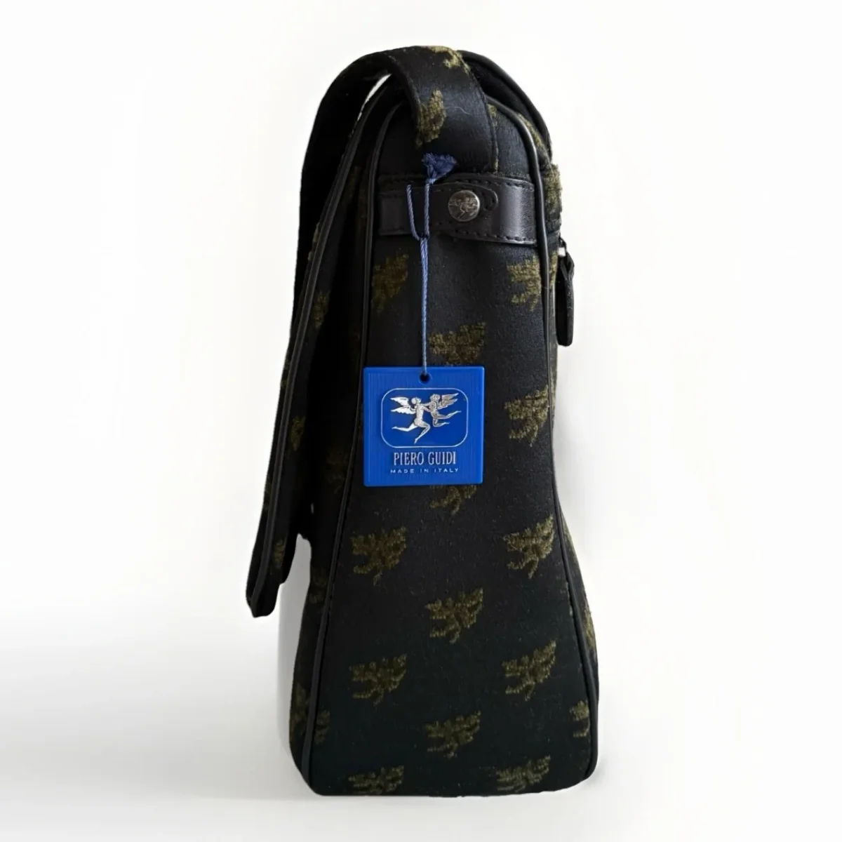 PIERO GUIDI borsa cartella con patta in tessuto con inserti in pelle nera