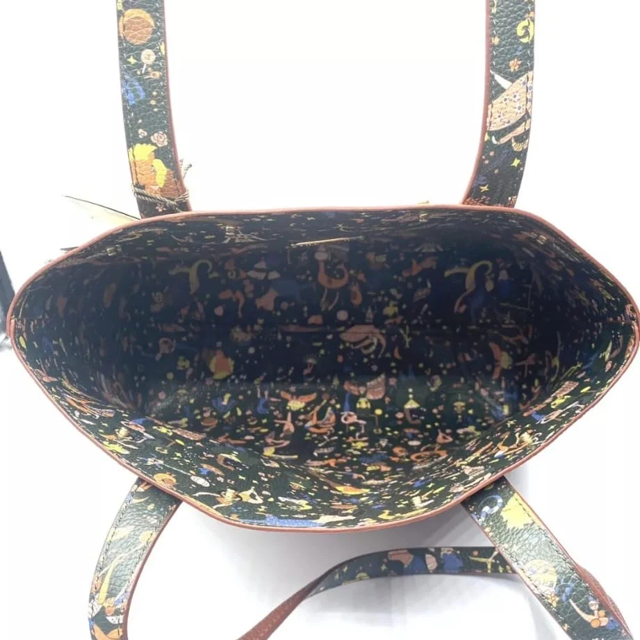 Borsa linea BE MAGIC realizzata in goffrato reversibile da una parte di colore marrone, dall’altra magic circus nera con doppi manici da portare a spalla