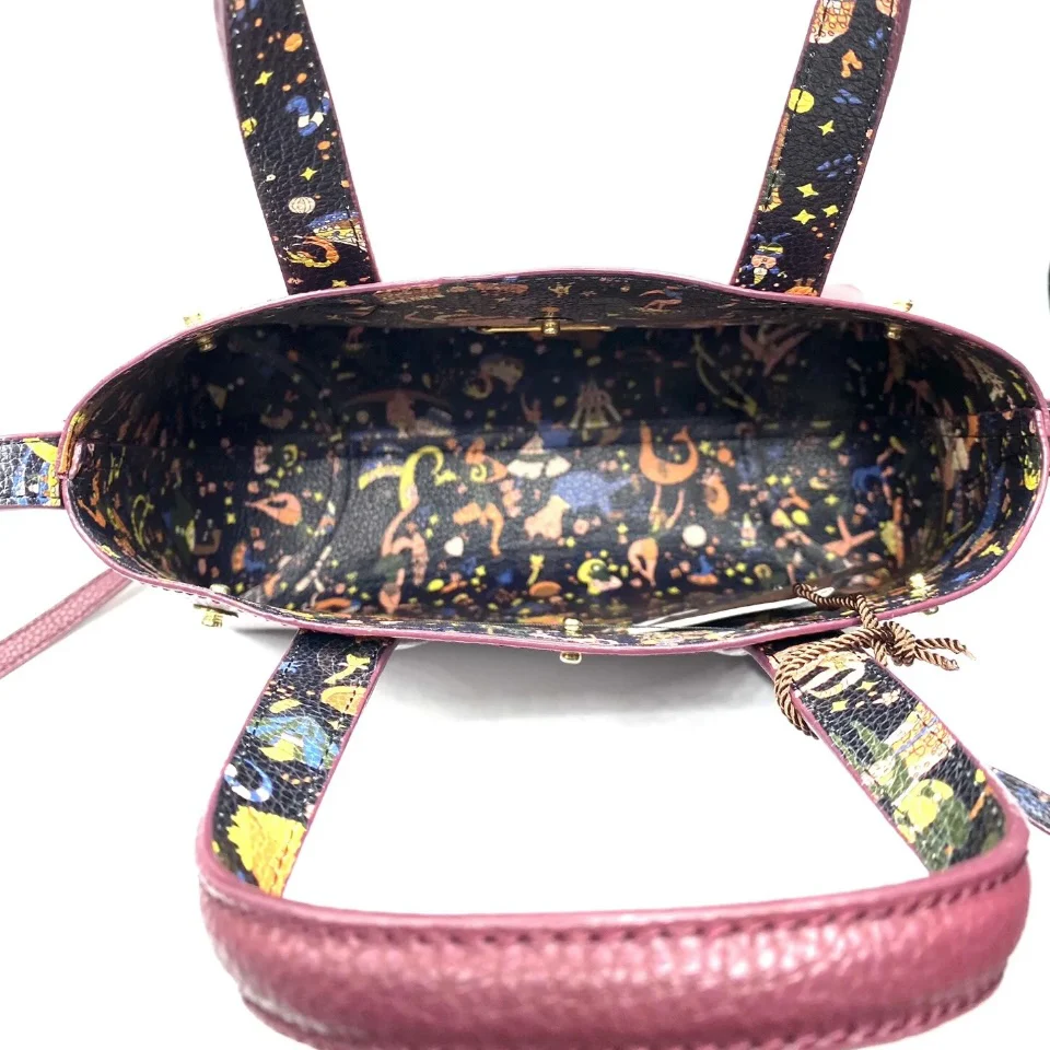 Borsa linea BE MAGIC realizzata in goffrato reversibile da una parte di color melanzana , dall’altra magic circus nera con doppi manici da portare a mano o a tracolla.