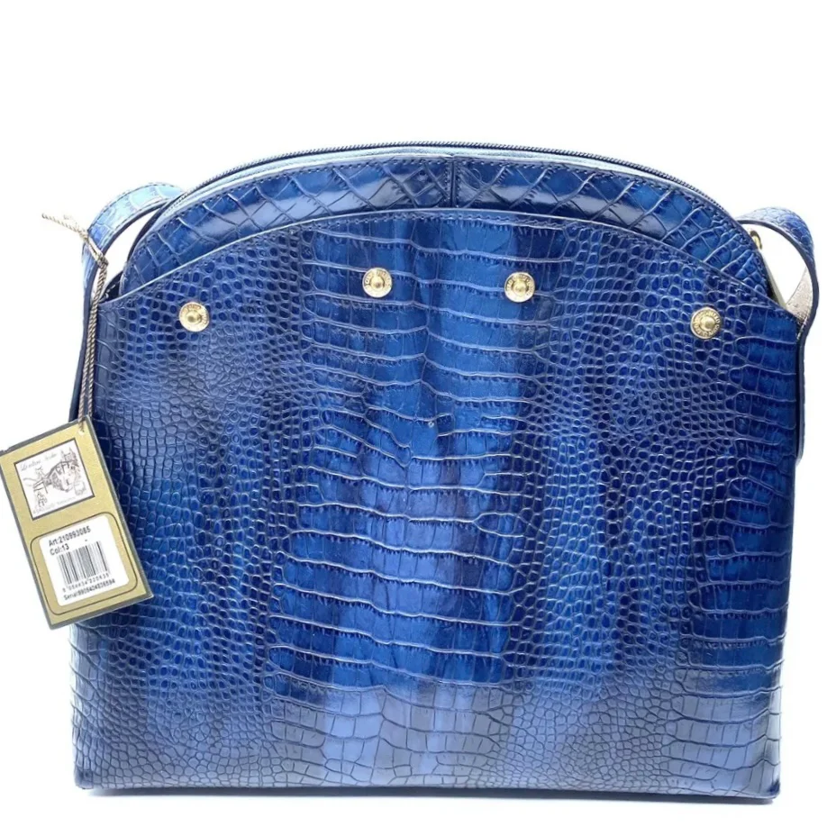 Borsa linea BE MAGIC realizzata in goffrato reversibile da una parte di colore blu sfumato stampa pitone, dall’altra colore argento con tracolla regolabile da portare a spalla o tracollaBorsa chiusa con cernieraFiniture in metallo doratoParte superiore fissata con bottoni a pressione staccabiliChiusura con zipMisure: 33 x 28 x 14 cm Made in italy
