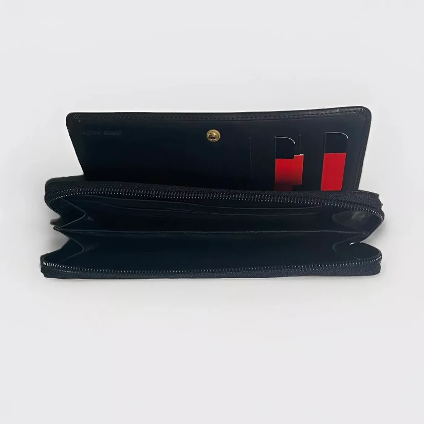 Portafoglio donna grande in pelle color nero diviso in due scomparti