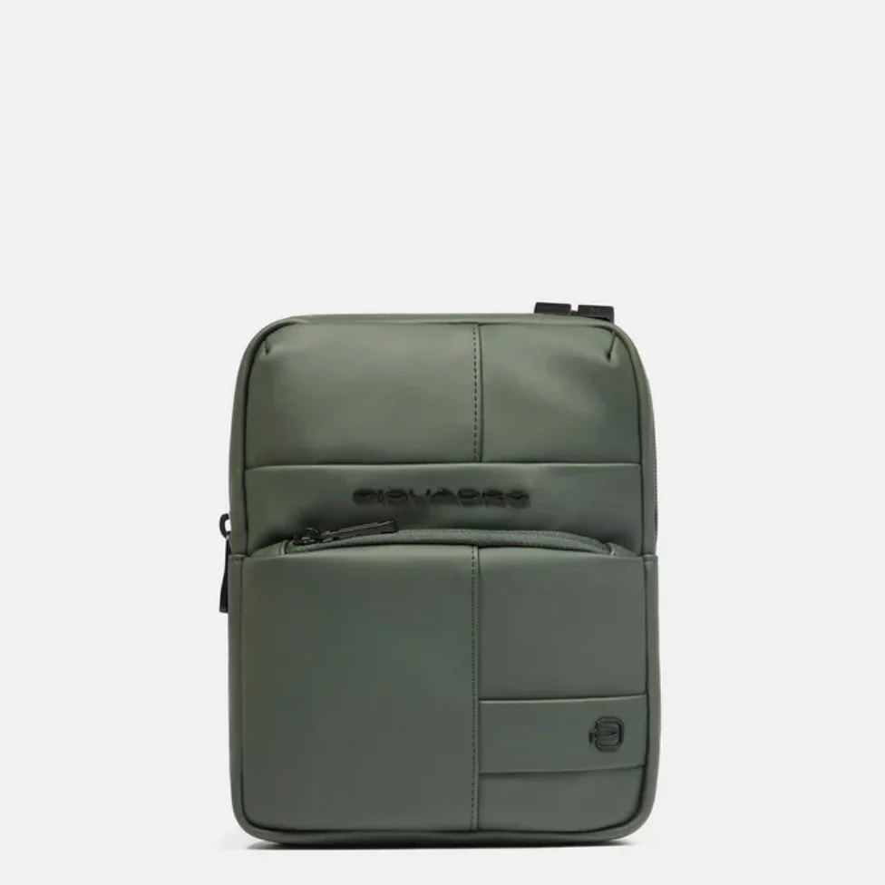 Piquadro borsello uomo a tracolla in tessuto gommato resistente all’acqua. Sistema di protezione anti frode RFID. Interno rivestito in tessuto color verdone, tasca imbottita porta iPad mini. Misure cm 18 x 23 x 6 Art. CA3084W129W VERDE