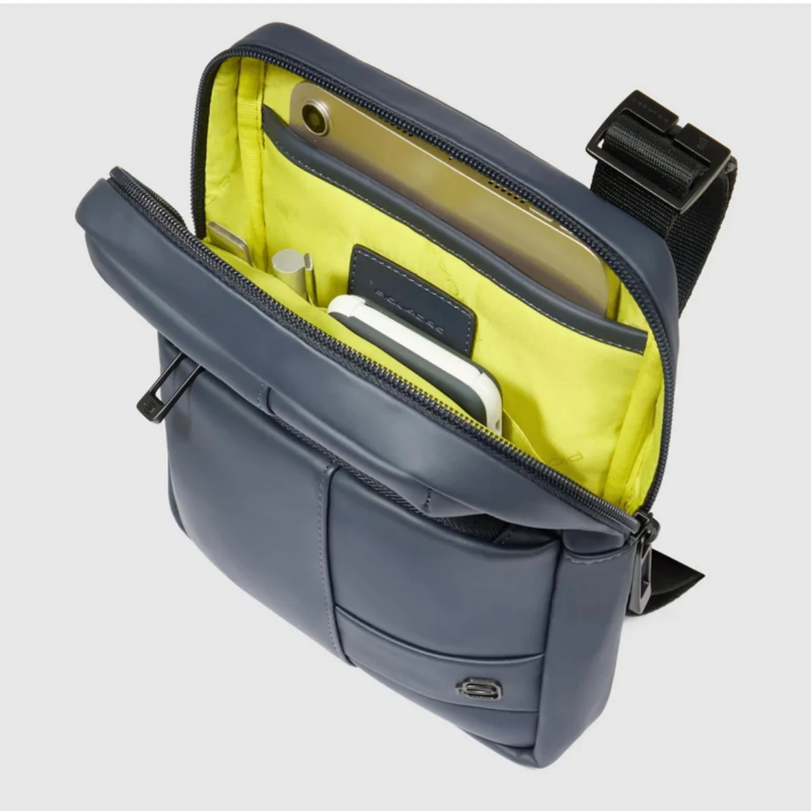 Piquadro borsello uomo a tracolla in tessuto gommato resistente all’acqua. Sistema di protezione anti frode RFID.