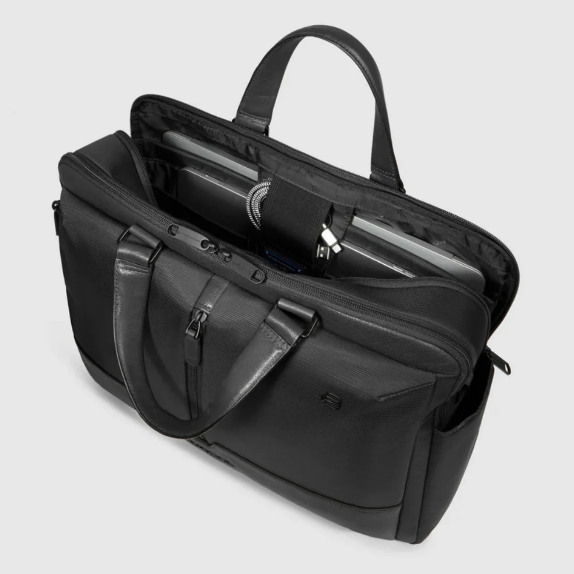 Piquadro cartella da lavoro tessuto e pelle