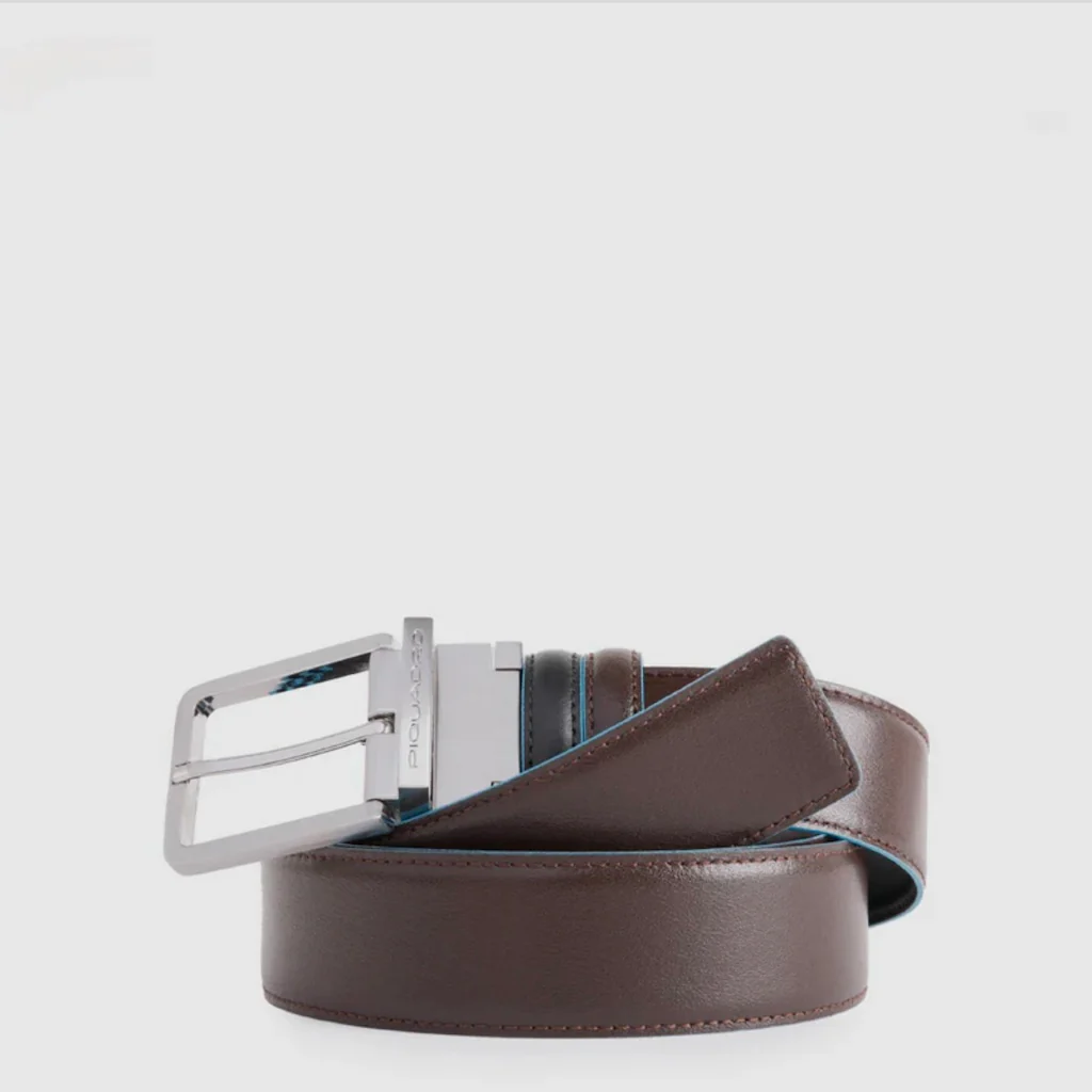 Cintura uomo in pelle, reversibile nero e testa di moro. Fibbia satinata ad ardiglione.