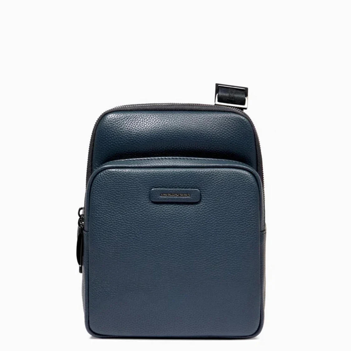 Piquadro borsello in pelle a due scomparti più tasca frontale e tasca sul retro. Doppia portabilità a borsello e trasversale a seconda di dove si posiziona l’aggancio della tracolla.