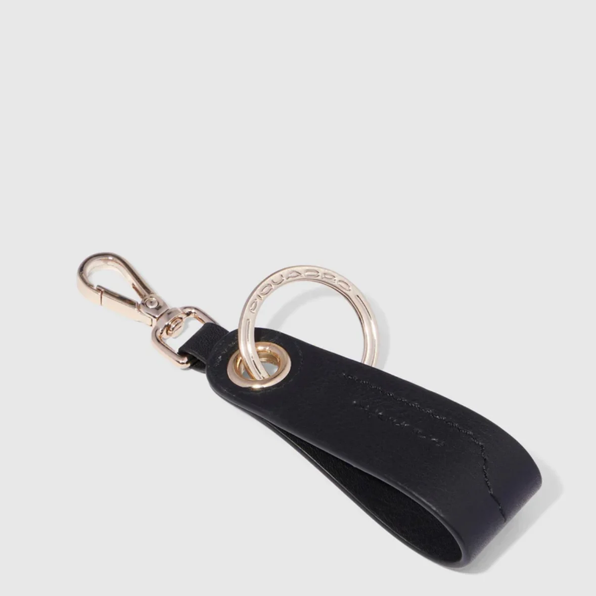 Piquadro portachiavi in pelle con moschettone. Accessori dorati.