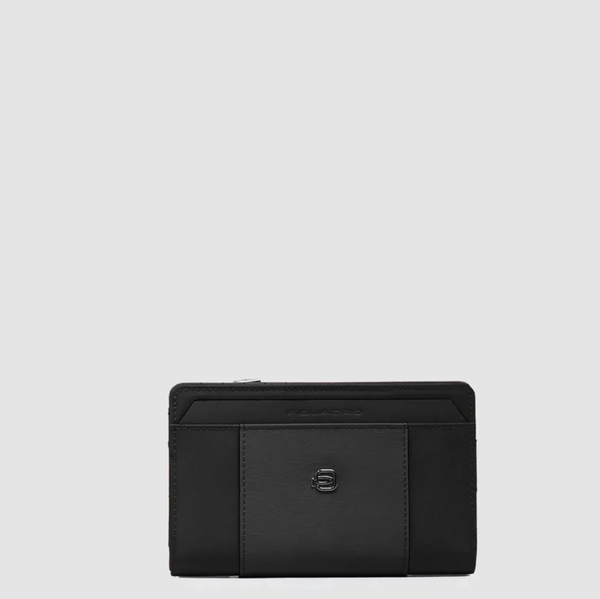 Piquadro portafoglio donna di medie dimensioni in pelle e in tessuto.