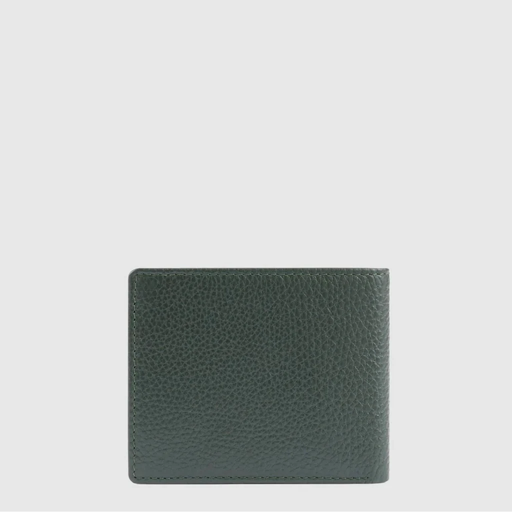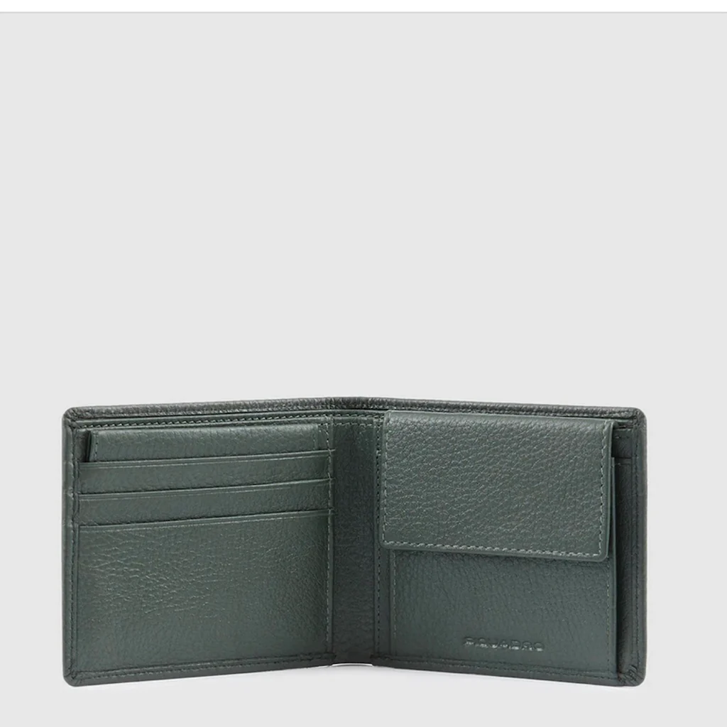 Piquadro, portafoglio uomo in pelle con portamonete e porta carte di credito ( 5 fessure), porta badge estraibile. Sistema anti frode RFID.