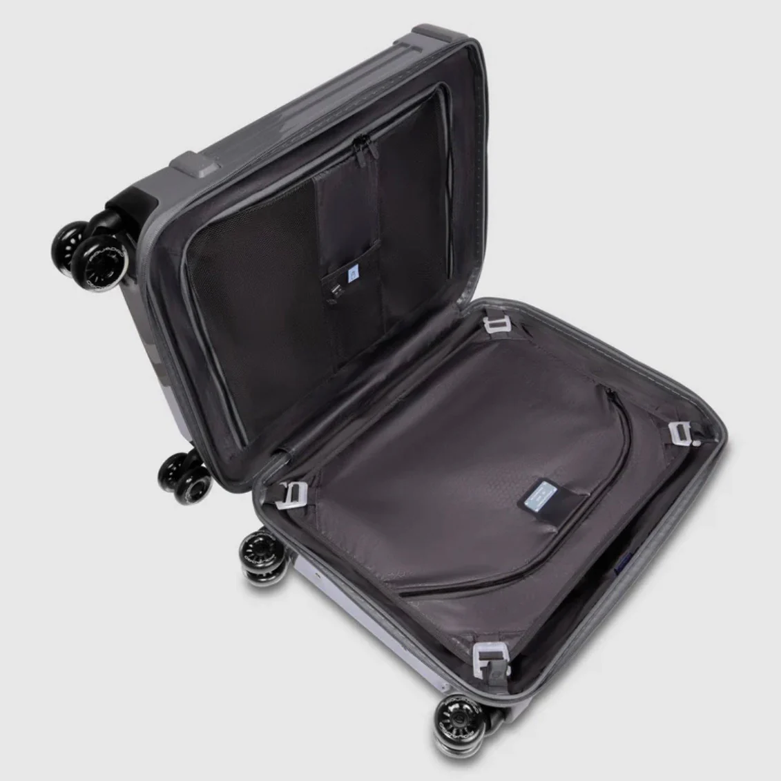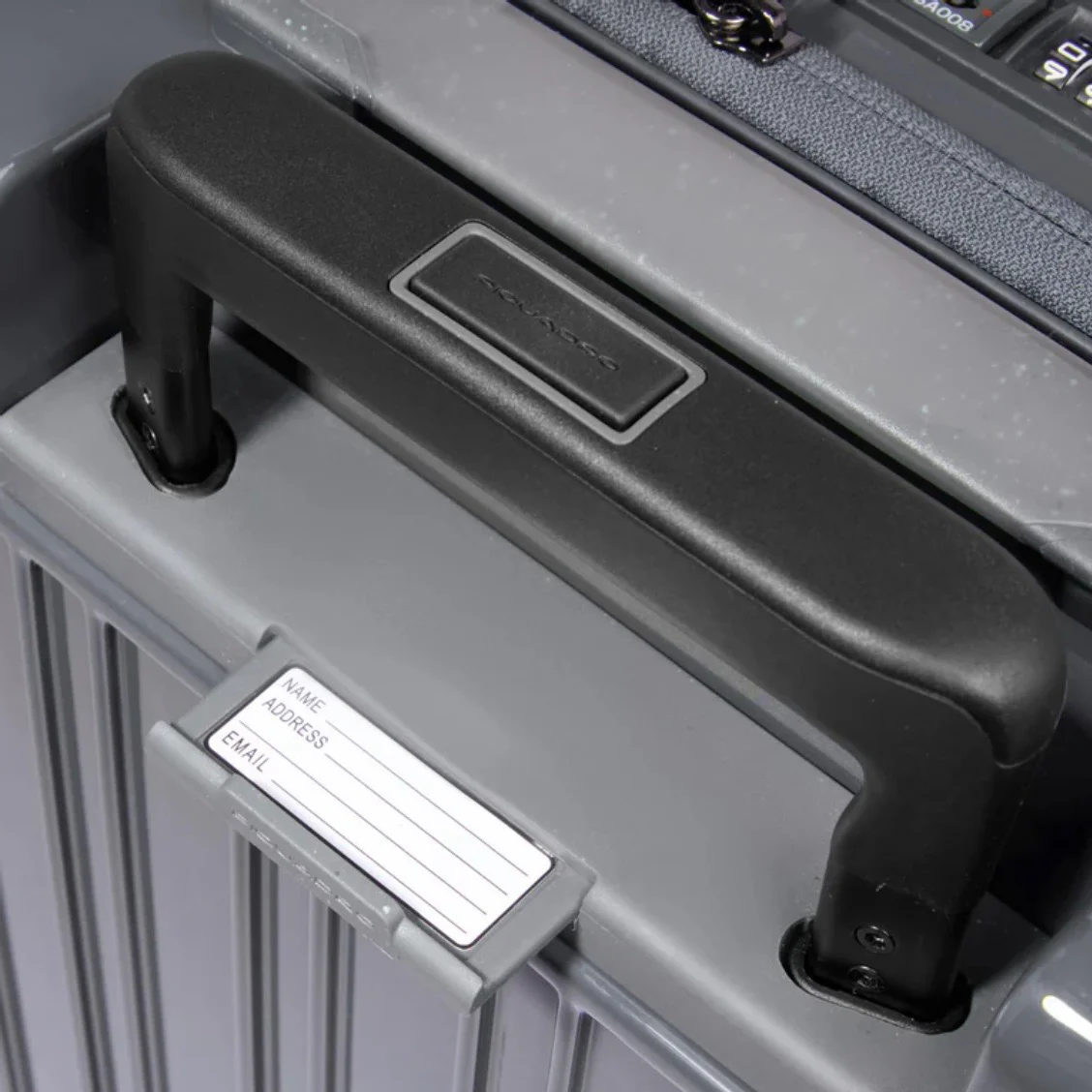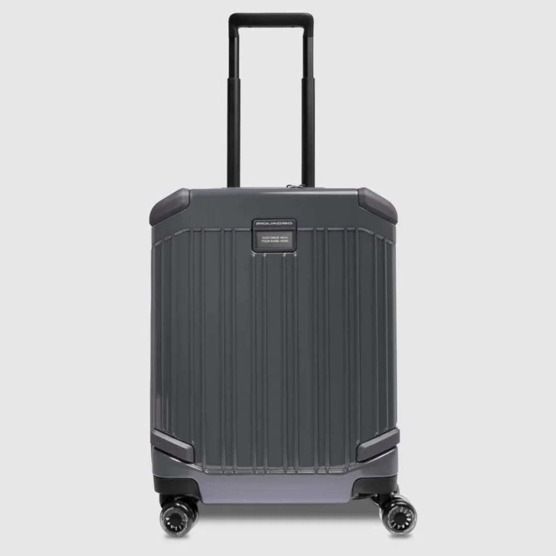 Piquadro trolley rigido a quattro ruote personalizzabile, dotato di chiusura TSA con porte USB e USB Type C, compatibile con Ryanair.