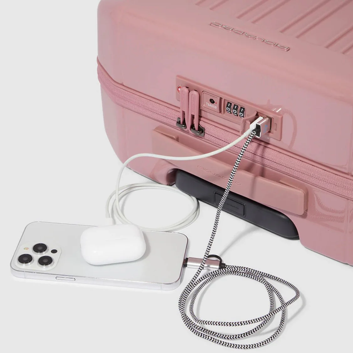 Piquadro, Trolley da cabina a 4 ruote con chiusura con combinazione, chiusura TSA, porta USB e USB type C. Fodera interna rimovibile e lavabile.