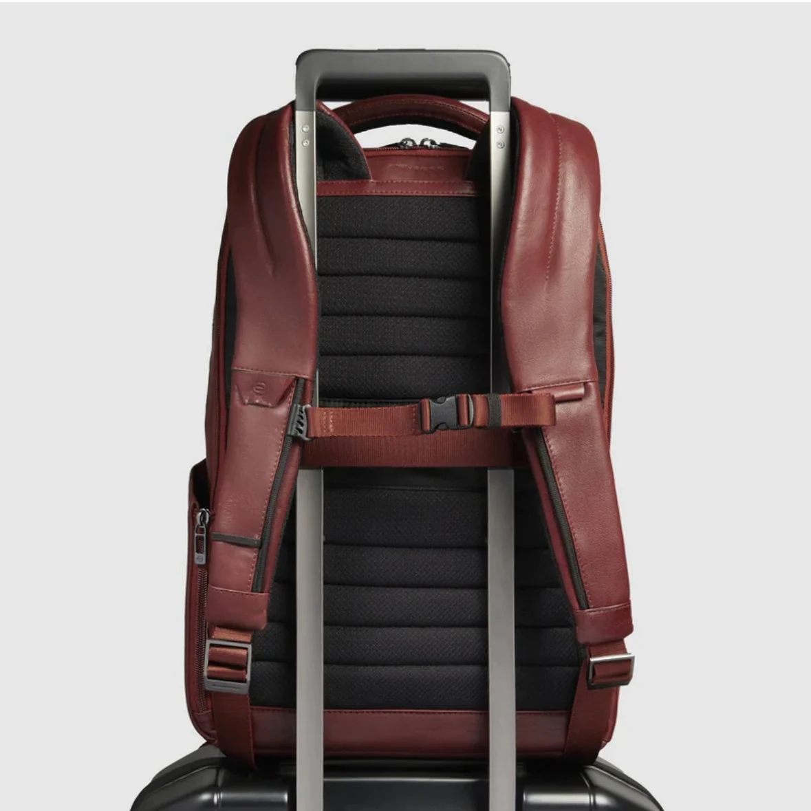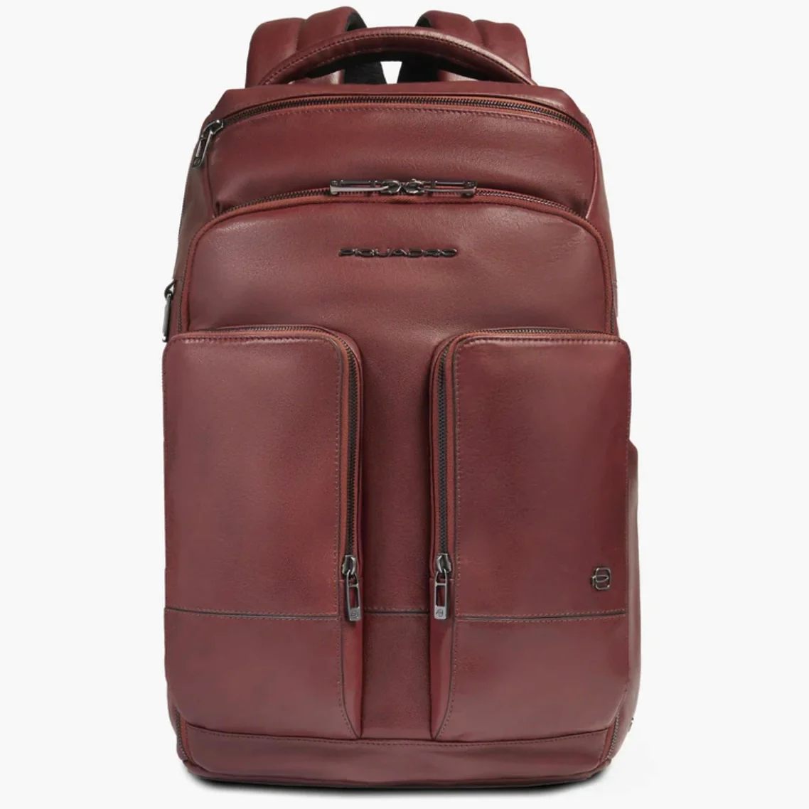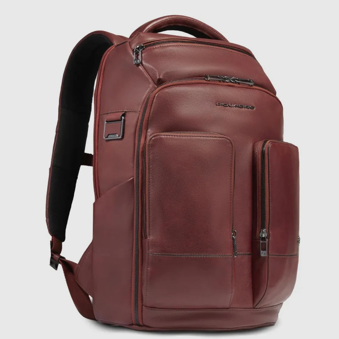 Piquadro zaino in pelle con porta PC 15,6″ e porta iPad rinforzati anti urto. Dotato di cinghia esternale, portaocchiali e protezione RFID.