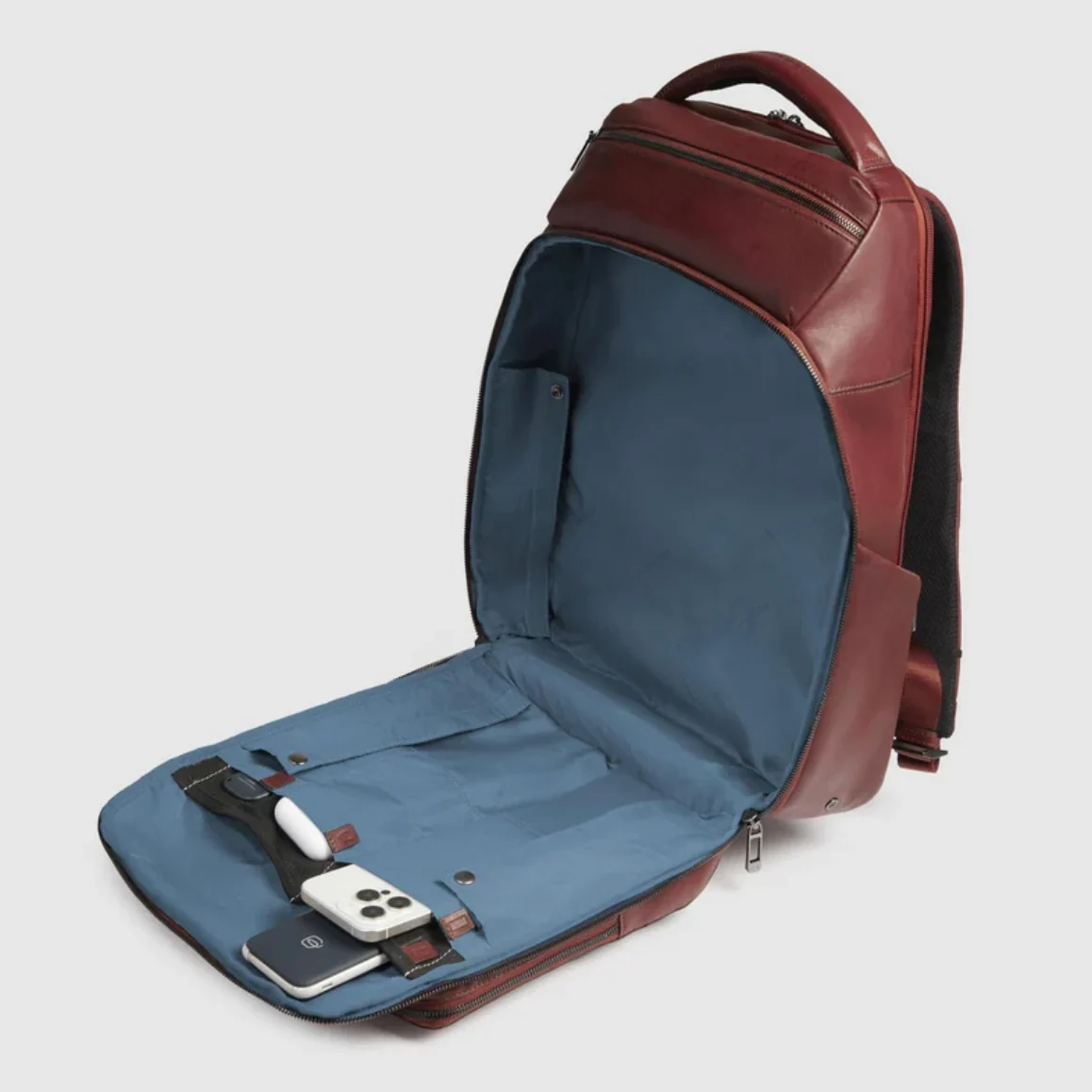 Interno foderato con organizzazione da ufficio, tasca per ricarica ad induzione e per power Bank