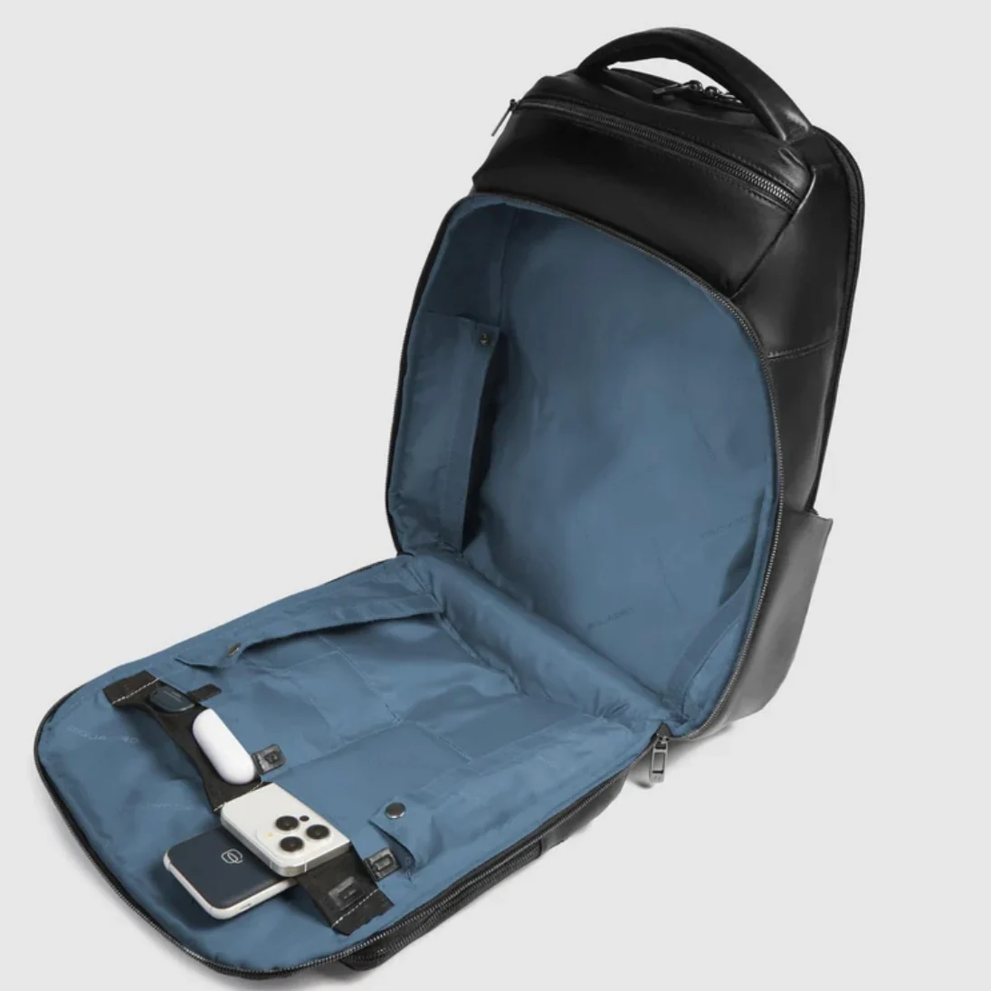 Interno foderato con organizzazione da ufficio, tasca per ricarica ad induzione e per power Bank