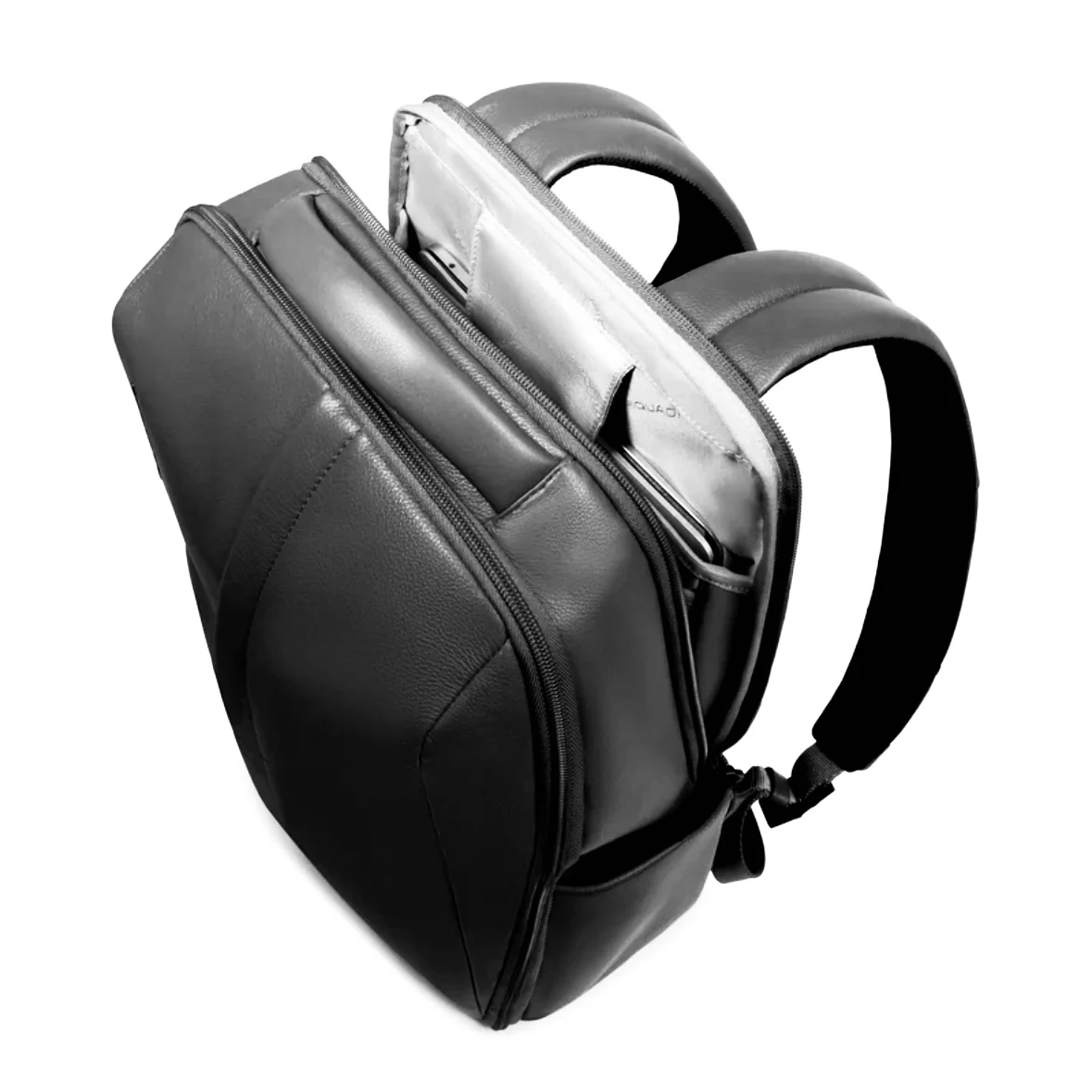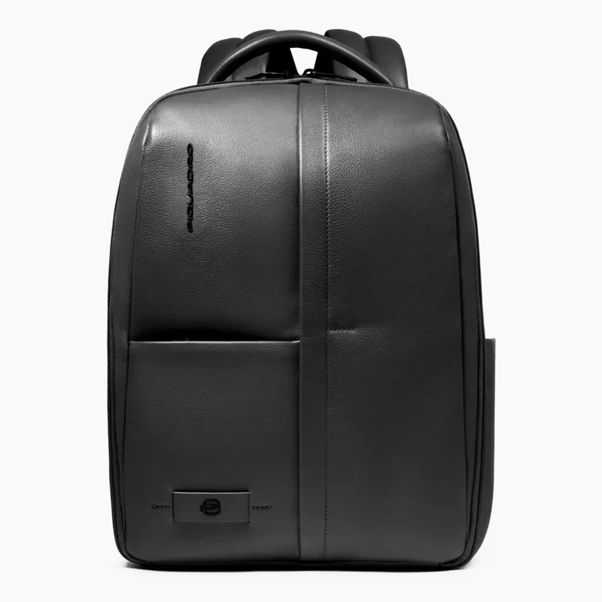 Piquadro zaino uomo in pelle porta pc 14″ a due comparti, comparto porta pc e porta iPad imbottito anti urto, elastico porta cavi. Comparto principale organizzato con tasche porta oggetti, apre su tre lati e questo lo rende ideale come zaino da viaggio per il trasporto di indumenti.