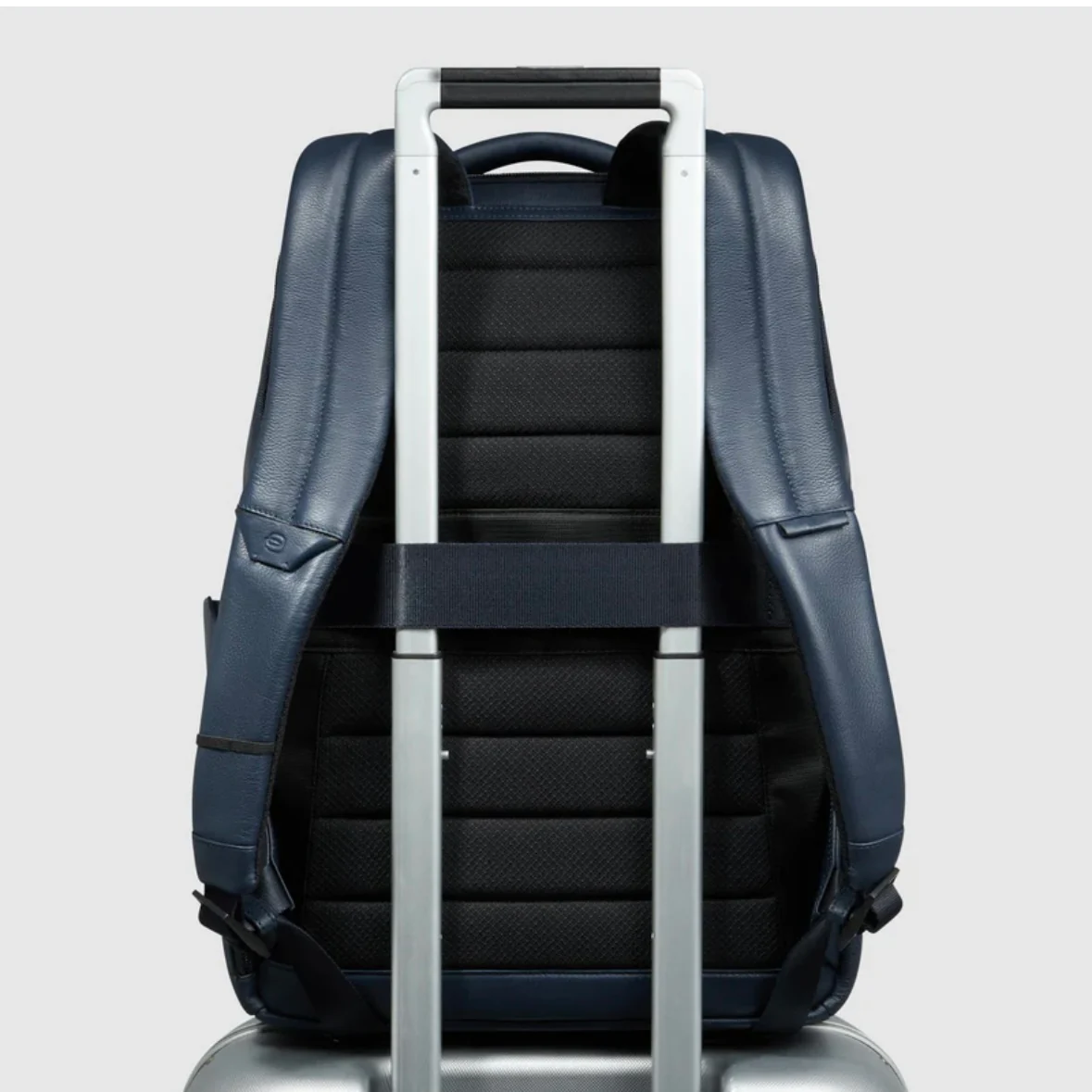 Piquadro zaino uomo in pelle porta pc 15,6″ a due comparti, comparto porta pc e porta iPad imbottito anti urto, elastico porta cavi. Comparto principale organizzato con tasche porta oggetti, apre su tre lati e questo lo rende ideale come zaino da viaggio per il trasporto di indumenti.