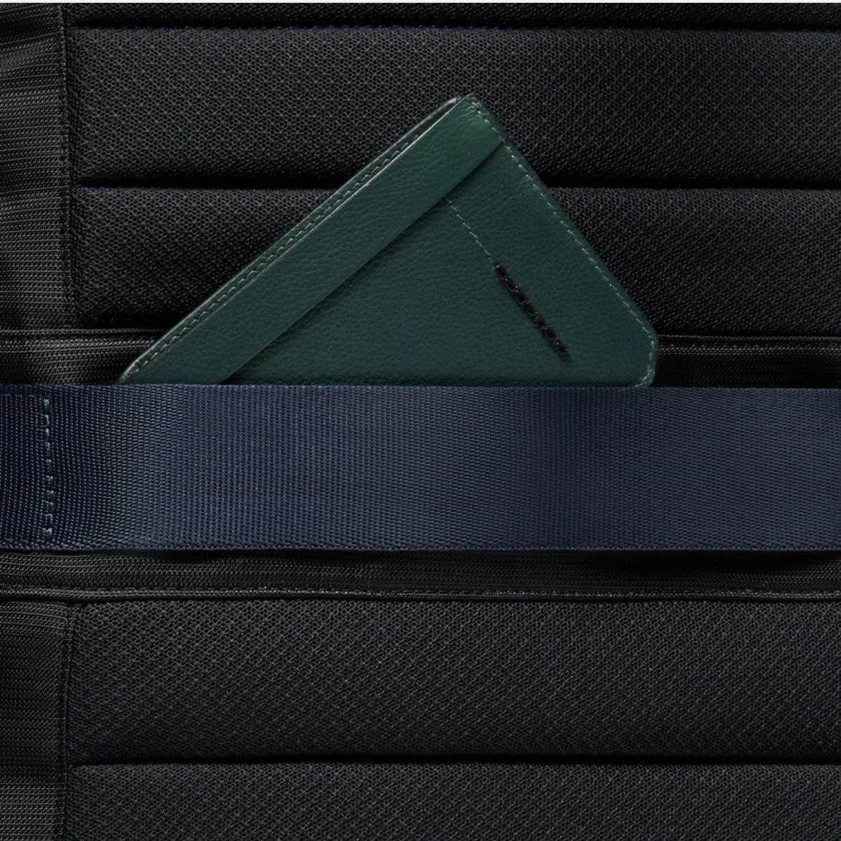 Tasche laterali porta ombrello e porta bottiglia.Sul retro, sistema di aggancio al trolley e tasca nascosta con protezione RFID.